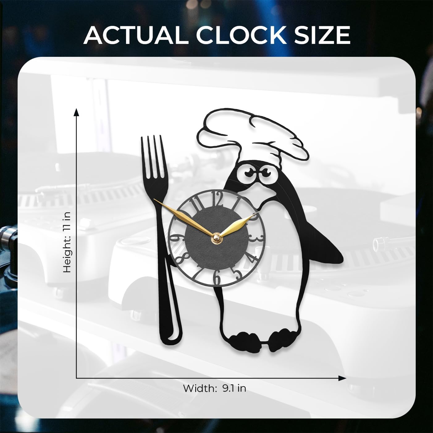 Penguin Kitchen Clock - Utensils and Cutlery Decor - Color Changing Wall Clock for Cooks, Bakers, and Chefs - Fun Gift for Kitchen Lovers, Black