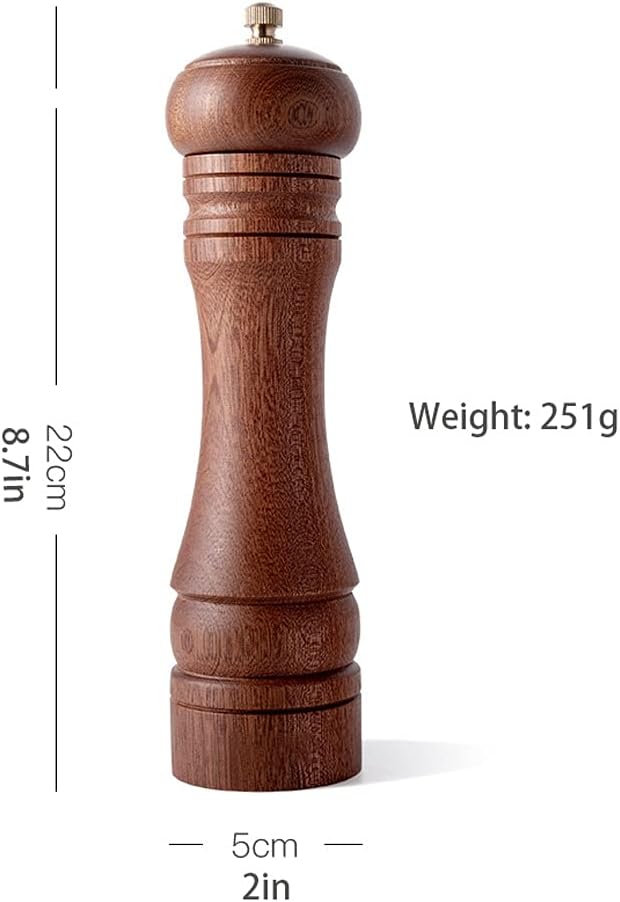 Family dinner, party with friends, or just an ordinary meal enjoy by oneself. A good piece of pepper mill holding in hand can always bring you a happy feeling. Eat not only for survival but also for happiness and satisfaction.Product Features:1.cap can be easily screwed off for easy refilling without mess.2. Ceramic Rotor allows you to achieve spice final crush, mill and grind without rust.3.Every portion is constructed firmly to stay away from falling apart.Name of wood grinderMaterial: Ebony wood, ceramic grinding coreSpecifications: 6.7 inches, 8.7 inchesApplication: coarse and fine grinding of freshly ground pepper, pepper, sesame, pills, etc.Package Included:1 x Pepper GrinderNOTE: The Pepper and Salt are not included.PrecautionsIt can grind the spices smaller than 8mm, and the ones larger than 8mm must be mashed and then ground.By adjusting the tightness of the nut, the thickness of the ground powder can be controlledIt is not recommended to store the ingredients for a long time, it is recommended to put them in the mill or store them for a short timeIf you need to grind sea salt, it is recommended to buy our ceramic grinding core grinder.The product is not recommended to be washed with water. If you need to change the seasoning, you can use rice grinding for cleaning and deodorization.Display your new seasonings mills in style. Makes a great gift for the professional chef, home cook or mother in your life.And the perfectly placed grinding mechanism means salt and pepper end up directly on your food, not your table.Elegant and fancy pepper mill grinders is great gift for neighbour or Friends. The natural texture can adapt to any furniture style.Wood Pepper Mill Grinder Service : If our products have any issues. please contact us and we will handle the problem.