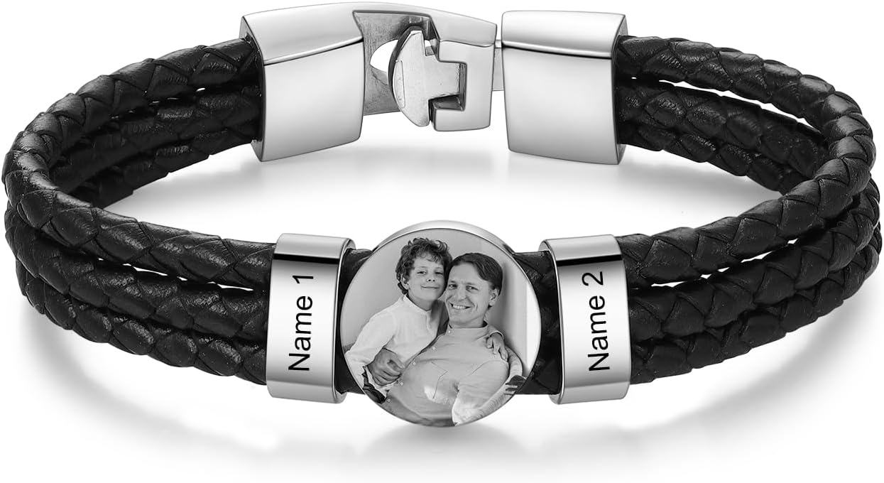 Personalized Photo Bracelet Custom Engraved Name Bracelet for Men Stainless Steel Bracelet Personalized Gifts for Men