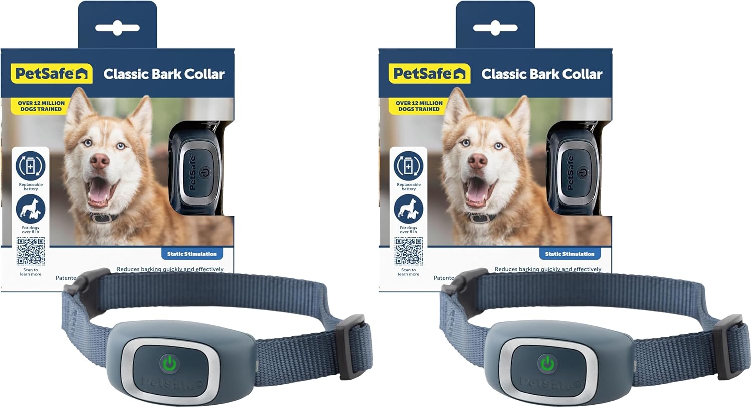 Take control of nuisance barking with the PetSafe Bark Collar, an advanced and easy-to-use dog training tool designed to help your dog learn better barking habits safely and effectively. This progressive correction bark collar features 15 levels of gentle static correction, allowing your dog to receive just the right amount of stimulation to discourage excessive barking without causing harm. Each time your dog barks, the collar automatically delivers a harmless correction, increasing with each bark until the barking stops. As your dog learns, the correction levels gradually decrease, supporting consistent and positive behavior changes over time. The PetSafe Bark Collar uses advanced sound and vibration sensors for automatic bark detection, ensuring the collar activates only when your dog barksnot from external noises or other dogs. A built-in safety feature turns the collar off for 3 minutes if your dog barks more than 15 times in 80 seconds, preventing unnecessary overstimulation. Designed with an adjustable nylon strap, this durable dog collar fits dogs weighing 8 lb or more and neck sizes up to 27 inches, making it a reliable choice for dogs of many sizes. Perfect for both indoor and outdoor training, the collar is weatherproof to withstand rain, snow, and muddy conditions, so your dog can train in any environment. Since 1988, PetSafe has been driven by a simple belief: safe, healthy pets lead to happier lives for pets and their families. For over 25 years, we've been dedicated to enhancing the lives of pets and the people who love them, treating every pet as a cherished family member and delivering life-changing innovations designed to enrich every moment. With U.S. roots and a global reach, our vet- and trainer-recommended products are built for every pet and backed by exceptional customer support. From backyards to dog parks, we're on a mission to create fields of joy for happy, healthy, and safe pets.