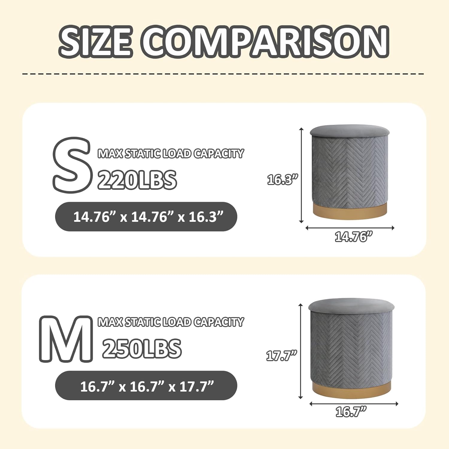| Size | M:16.7"D x 16.7"W x 17.7"H |