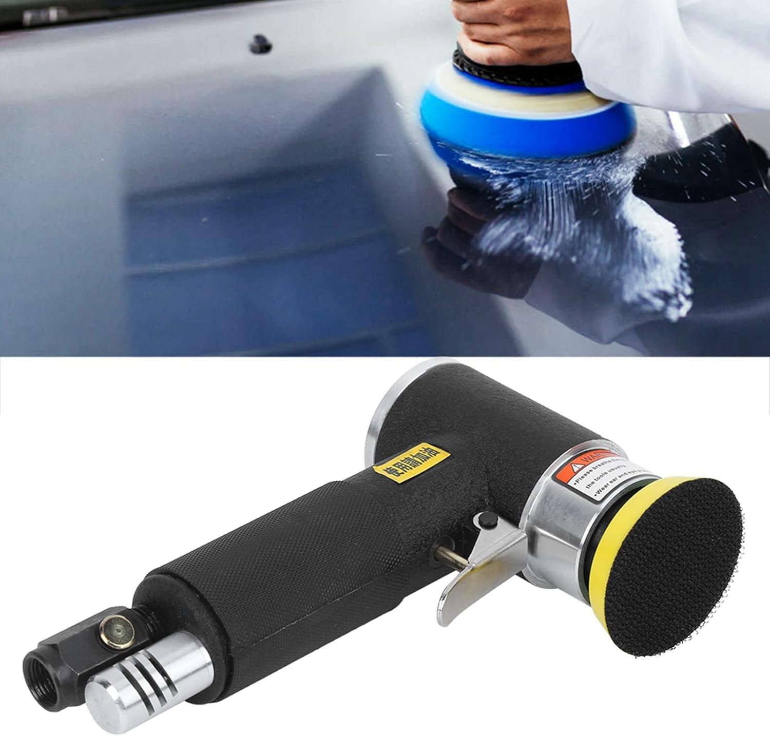 [HIGH PERFORMANCE & DURABILITY] This pneumatic polisher is built with high-quality imported components and undergoes precision assembly to ensure and an extended service life. Designed for demanding tasks, it meets strict quality control standards to deliver reliable operation every time. The robust construction guarantees durability even under heavy use.[PRECISION GRINDING IN TIGHT SPACES] Equipped with a small-diameter grinding disc (2-inch or 3-inch), this air sander effortlessly reaches narrow and confined areas without leaving dead corners. Perfect for detailed polishing and grinding work, it ensures a smooth and even finish in hard-to-access spots.[ERGONOMIC & LIGHTWEIGHT DESIGN] The lightweight and compact design of this pneumatic polisher reduces user fatigue during prolonged use. Its elbow-style handle improves grip and control, enhancing work efficiency. Easy to operate, it is ideal for both professionals and DIY enthusiasts.[IMPROVED EFFICIENCY & VERSATILITY] Engineered for high-speed performance, this polishing machine features a no-load speed of 1500 RPM, making it suitable for various grinding and sanding applications. The recommended air pressure (0.6-0.7MPa) ensures optimal performance with minimal gas consumption.[READY TO USE & QUALITY ASSURED] The package includes a polishing machine, replaceable sanding pad, mounting parts, and a user manual. Each unit undergoes rigorous inspections before leaving the factory to guarantee top-notch quality. Note: New and old versions may be shipped randomly.Spec:Item Type: Polishing machineModel: YC-2611Disc Diameter: Approx. 5.08cm / 2inchApprox. 7.62cm / 3 inchWorking Pressure: 0.6-0.7MрaRecommended Inner Diameter of Air Pipe: Approx. 5mm / 0.2in, approx.6.5mm / 0.26inNo-Load Speed: 1500 (rpm)Inlet Size: Approx. 0.64cm / (1/4 inch)Average Gas Consumption: 6cfmPackage List:1 x Polishing