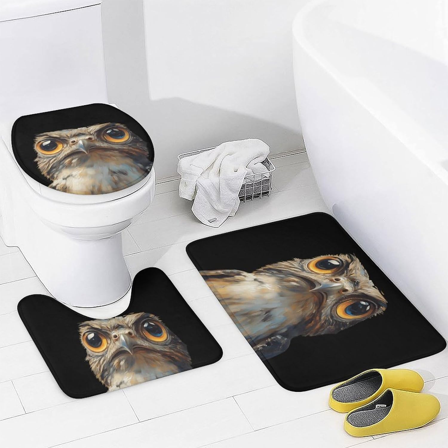 This bathroom set includes a thickened U-shaped floor mat, a waterproof shower curtain, a toilet mat, and a floor mat. It uses unified design elements to create a coordinated bathroom space. The non-slip silicone dot matrix on the bottom ensures safety. The whole set of design can easily upgrade the style of the bathroom, taking into account both practicality and beauty!