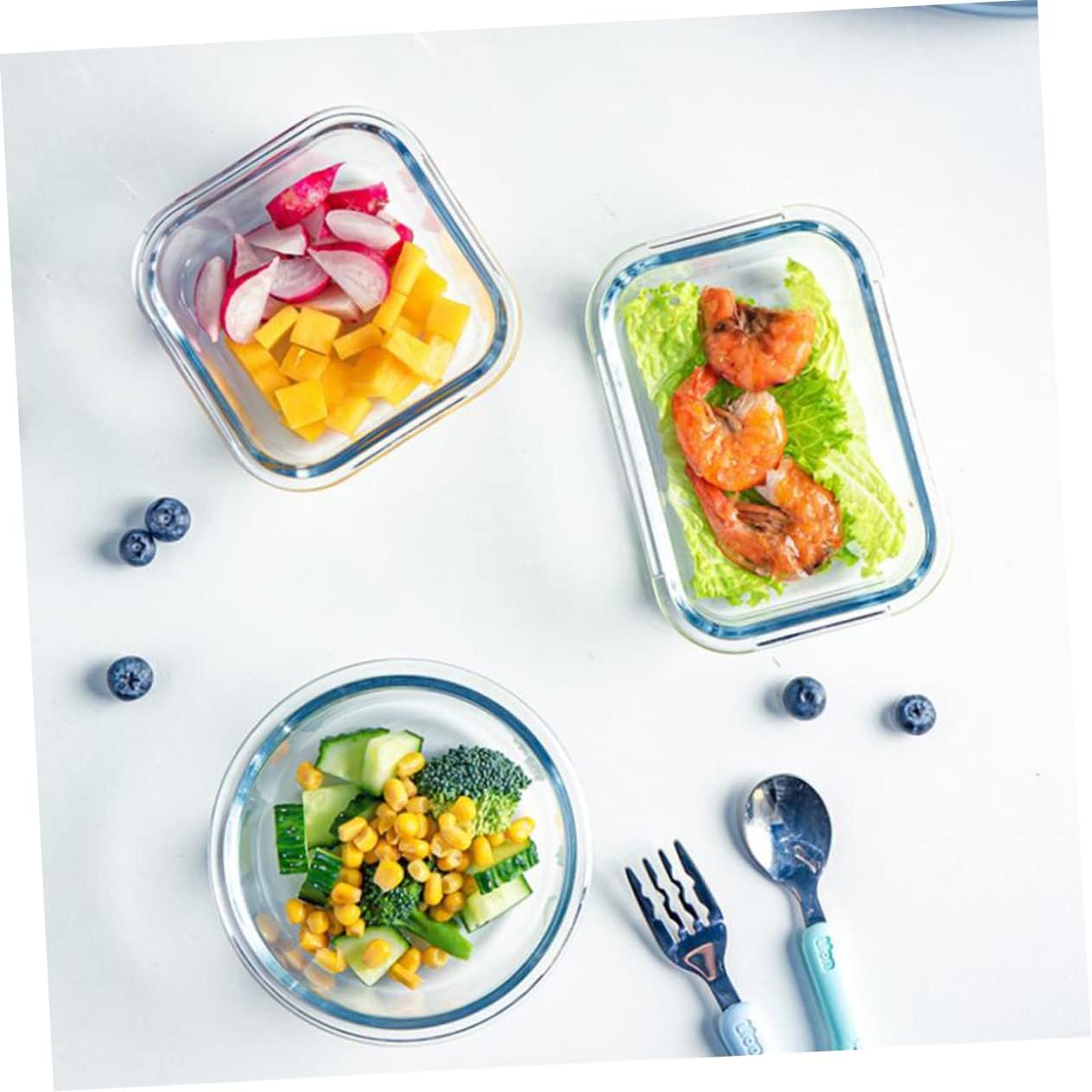 Package List 1 x 320ml square glass bowl without separation, 1x 520ml square glass bowl without separation, 1 x 800ml square glass bowl without separation Characteristics -Color: Sky-blue -Material: Borosilicate glass -Size: 15.00X15.00X6.20cm/5.89X5.89X2.44in -Smooth surface, easy to clean, will not scratch your hands -Made of with anti-fracture performance -Suitable for both girls and boys due to three kinds of glass box capacity to choose -Strong sealing, the glass bowl will not leak water or oilGoods InformationBorosilicate glass craftsmanship delivers chemical resistance and robust heat tolerance, transforming everyday food storage into and practical experience. From refrigerator organization to microwave reheating, these sky-blue containers solve common kitchen challenges by resisting cracks and easing steam release through a hidden vent hole, promoting safe and convenient use. Beyond functionality, their transparent design invites users to appreciate meal preparation as moment of care, inspiring balanced eating habits. Nestled in routines, these containers support efficient and reheating needs for individuals and families alike. Driven by commitment to practical safety, this set of glass lunch boxes encourages mindful eating and organized storage as essential parts of daily life From PRETYZOOM was founded to bring safe and convenient into homes, focusing on practical glass storage that enhances meal enjoyment. Our borosilicate glass bowls embody durability and thoughtful design, helping users create healthy dining moments. Experience everyday ease with PRETYZOOM