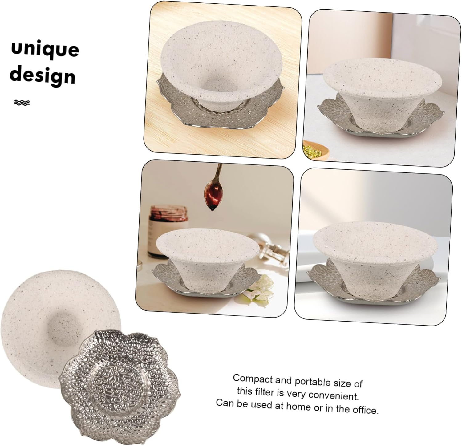 Package Include 5 x Ceramic Tea Strainer 5 x Tray Features -Size:9.20X9.20X4.00cm/3.62X3.62X1.57in (strainer) tea ball -Color:White mesh -Material:Ceramic, tea filter tool -Size:9.50X9.50X1.50cm/3.73X3.73X0.59in (tray) operated - The filter strain out the coffee ground and tea ground more , preserving taste of tea infuser for tea. - Ceramic material, filters tea leaves and residue, exquisite and delicate. Suitable for different tea. small tea filter - Multi-functional tea strainer, filters tea leaves and isolates tea residue, can give you convenience. fine - Easy to clean, practical and convenient, healthy and safe, suitable for home or restaurant use ceramic strainer. - Easy to use, just put it on your tea cup, and then pour the tea in this filter, will strain out leaves LED candlesticks.Goods Descriptionstrainers With this Tea Strainer, means better tea with fewer foams and smoother flavor.perculators It can strain out the coffee ground and tea grounds more , thus preserving the good taste of tea and coffee.filter for tea A definite must-have for tea lovers