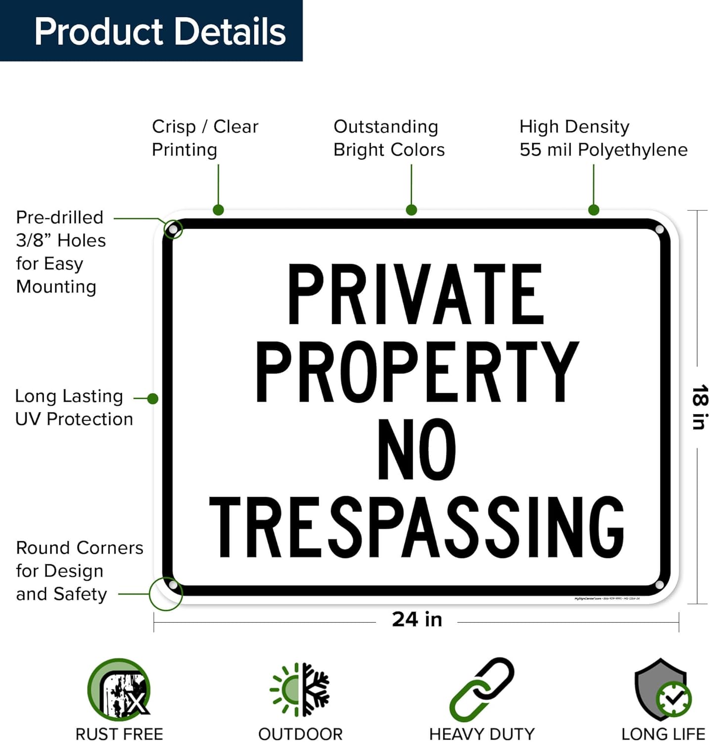 Private Property No Trespassing Sign, (MS-1264) 18x24 Inches, 55 mil thick HDPE (high density polyethylene), Made in USA by My Sign Center