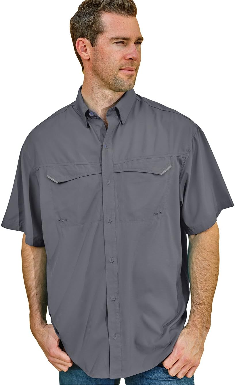 Designed to meet the needs for on the field or off, the new protective button down shirt is constructed of a soft Woven Mini Checker fabric. A light weight, functional fishing shirt made of micro polyester, with 40 UPF sun protection. Fabric: 100% micro polyester, 2.36oz. Machine wash.