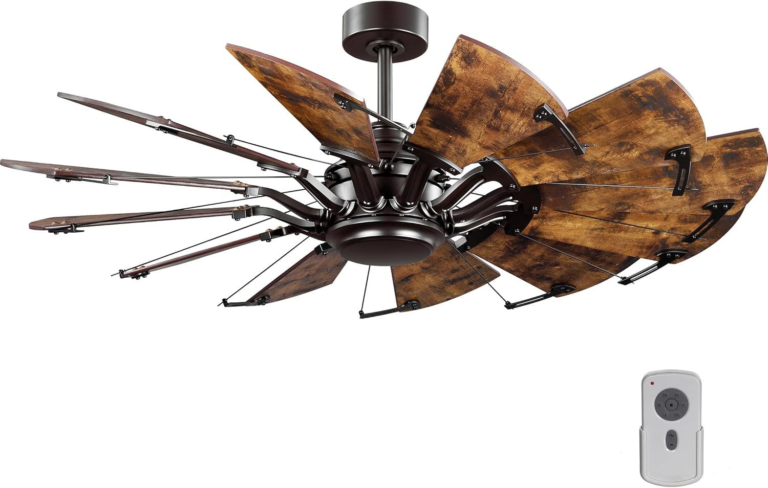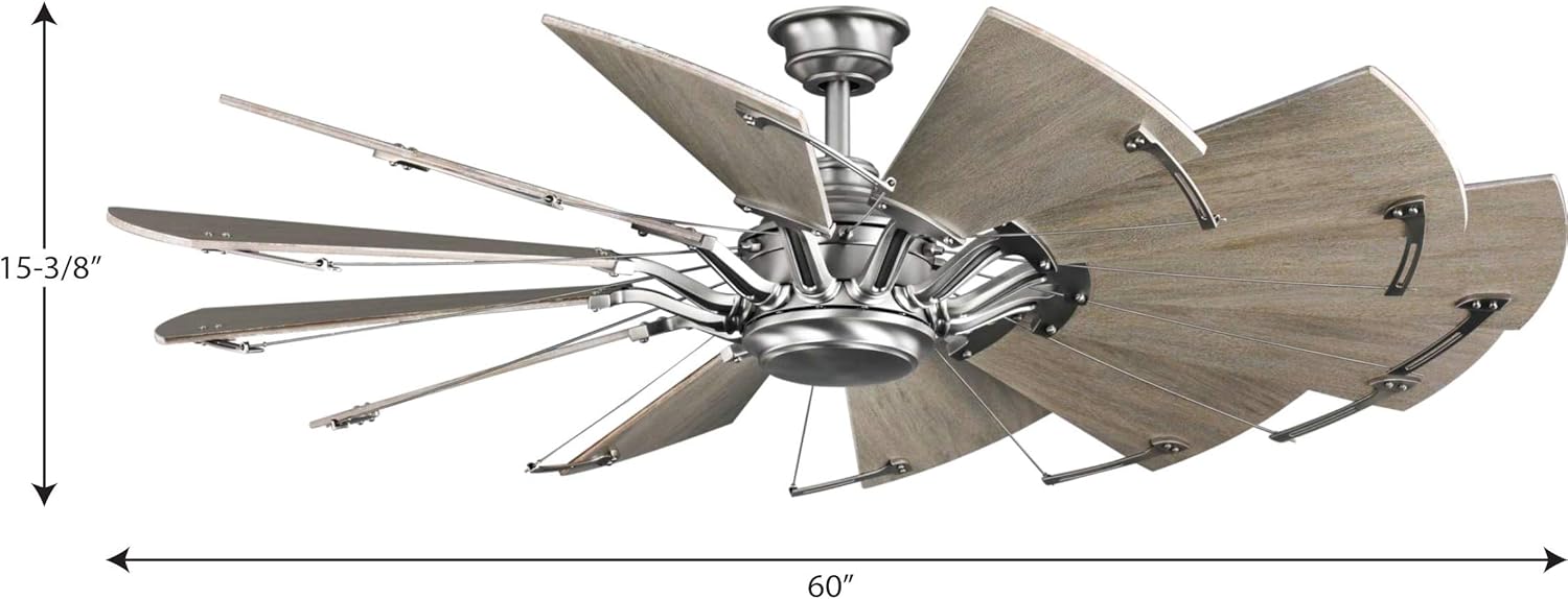 Springer is a statement-making ceiling fan with a rustic flair and Antique Nickel finish and White Barnwood blades. The 12-blade, 60 in ceiling fan was inspired by the form and function of a windmill and is ideal for Farmhouse, Industrial and Transitional interior settings. A full function remote control with batteries is included along with a dual mount canopy that accommodates flat or sloped ceilings.