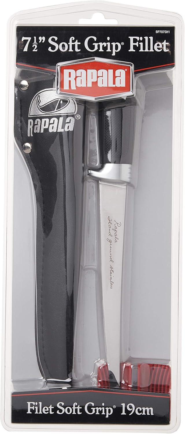 This Soft Grip Fillet Knife is equipped with the famous Rapala flexible stainless steel blade combined with a no-slip, soft-grip molded textured handle, giving you maximum control and comfort while filleting. Includes a black sheath that easily fits on your belt and a single-stage sharpener to keep your Soft Grip Fillet Knife in peak performance