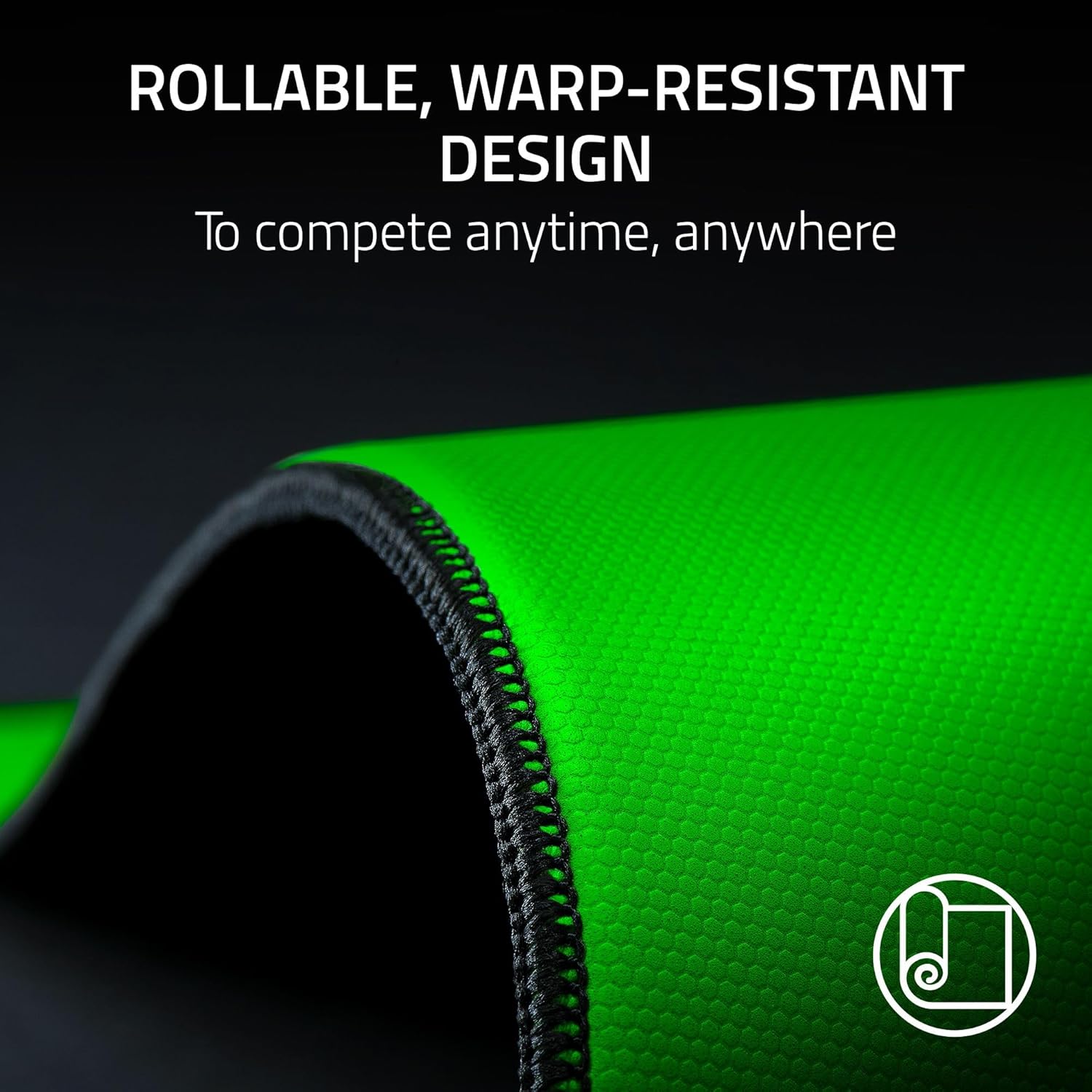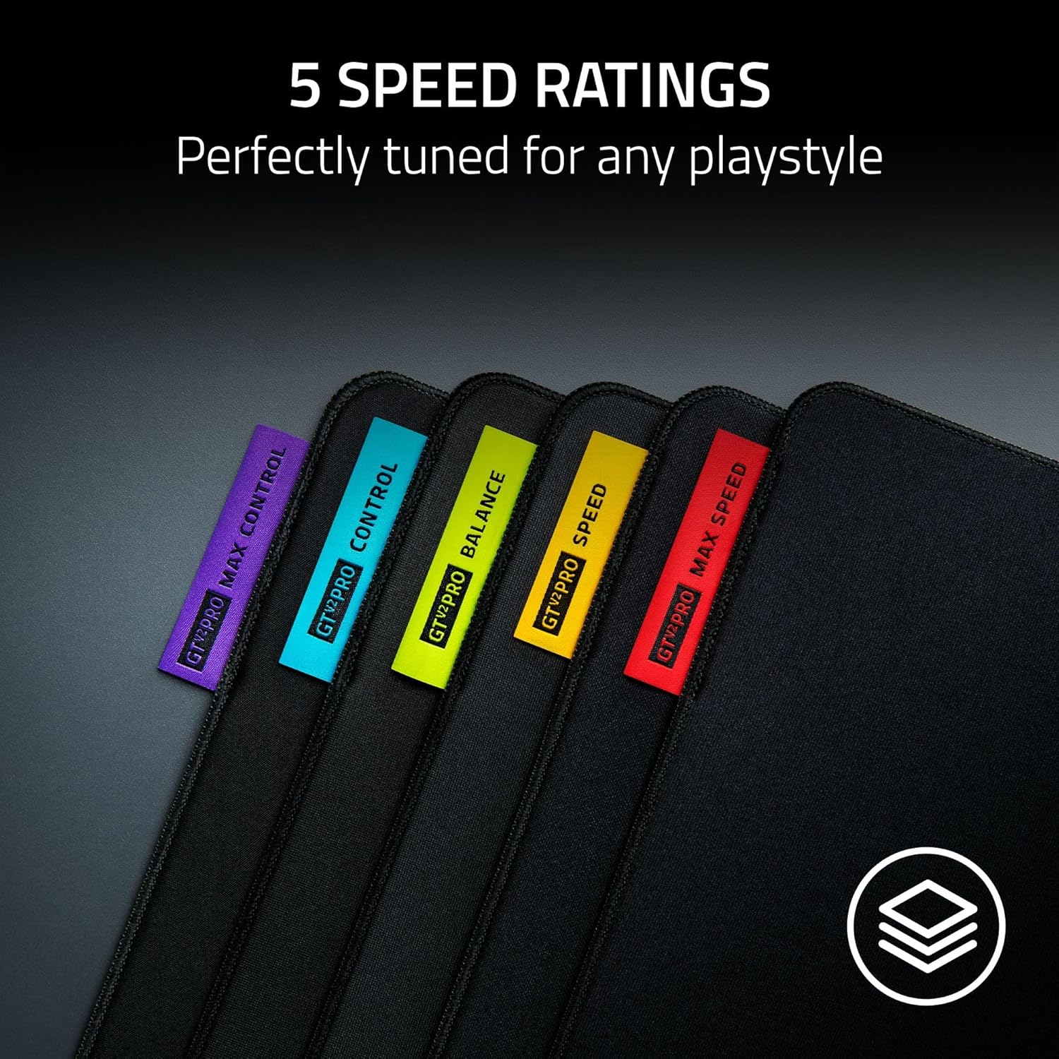 Customizable Gaming Mouse Mat With Multiple Speed Options This gaming mouse mat is designed for players who want control over glide speed and surface feel. Available in Max Control, Control, Balance, Speed, and Max Speed, each option is tuned for different playstyles, from slow, precise aim to fast, sweeping movements. Players can choose the surface that best matches their sensitivity and competitive needs.Surface Performance Tuned For Precision Or Speed Max Control delivers the highest stopping power for pixel‑perfect tracking and precision aim, while Max Speed offers the fastest glide for rapid flicks and smooth, uninterrupted movement. Control, Balance, and Speed options provide intermediate glide characteristics for players seeking a refined middle ground between control and speed.Razer Proprietary GlideCore Foam Construction Built with GlideCore Foam, the mat features varying firmness levels engineered to complement each speed rating. Firmer foam on faster surfaces enables quick glide recovery, while softer foam on control surfaces enhances stopping power and micro‑adjustments for consistent performance. Max Speed is the firmest and Max Control is the softest.Optical Sensor Optimized Surface The micro‑textured surface is optimized for modern optical gaming mouse sensors, delivering accurate tracking and consistent responsiveness. Each surface is tested in partnership with a leading sensor manufacturer to ensure reliable performance across different DPI levels and competitive gaming scenarios.Esports‑Calibrated Size For Consistent Aim Designed with esports‑calibrated sizing preferred by professional players, the mat provides ample surface area for both low‑DPI arm movements and high‑DPI wrist control. The size supports consistent tracking across competitive genres, from fast‑paced FPS games to precision‑dependent MOBAs.Rollable, Warp‑Resistant And Travel‑Ready Design Designed for portability, the mat is fully rollable and resistant to warping, stretching, or loss of shape. This makes it ideal for transport in backpacks and use at LAN parties, tournaments, or competitive events where consistent surface performance is essential.Stitched Edges For Long‑Lasting Durability Reinforced stitched edges prevent fraying and wear over time, helping the mat maintain its structure and surface integrity through extended daily use and intense gaming sessions.