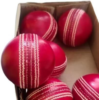 RED CRICKET LEATHER BALL ( pack of 6) Water-proofed Machine - stitched 20- 20 is a good quality two-piece cricket ball made from alum tanned leather SCORE MORE RUNS - Each ladies cricket ball is extremely bat-friendly, helping you maintain your pride and joy! Built with 4 pieces of leather, our cricket ball junior brings an ideal softness to your play whilst retaining its shape through even the biggest of 6s! TAKE MORE WICKETS - Our cricket balls ladies suit every bowling style! Whether you're a swinger, yorker or slider, these shine-polished match PROFESSIONAL SPECIFICATION - These cricket hard balls are engineered with the help of Australian cricket experts to satisfy the international cricket standards! Carefully hand stitched where it needs to be and finished by machine, each 142g hard ball cricket holds up its end of the bargain! RESPONSIBLE - This cricket white ball has been thoughtfully crafted from environmentally sustainable sources, without compromising on quality! Suitable for practice, T-20's, ODI's and Test Matches alike to easily last between 20 and 50 overs and even more if played on the right surface! Suitable for practice , club matches ,T-20, ODI, Test matches , Night /Day Cricket