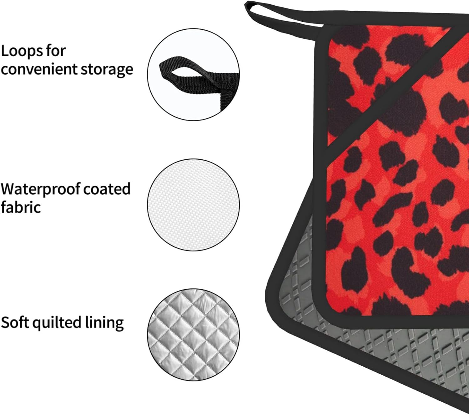Upgrade your kitchen essentials with this oven mitts and pot holders set, designed for safe and comfortable handling of hot cookware. The set includes 2 heat-resistant oven mitts and 2 pot holders with pockets, making it a practical choice for daily cooking, baking, grilling, and microwave use.Crafted from high-quality polyester with thick insulated padding, these kitchen gloves deliver reliable heat protection up to 260°C. The soft quilted lining ensures comfort and flexibility, while the silicone palm design enhances grip and control when handling hot pots, pans, and trays.The non-slip silicone surface provides added stability, giving you confidence when moving hot cookware. Waterproof inner and outer layers make cleaning simple—just wipe clean or hand wash and air dry for easy care.Each piece features a convenient hanging loop for organized storage and quick access in your kitchen. Stylish and functional, this oven mitts set also makes a thoughtful gift for family and friends on holidays, housewarmings, and special occasions.