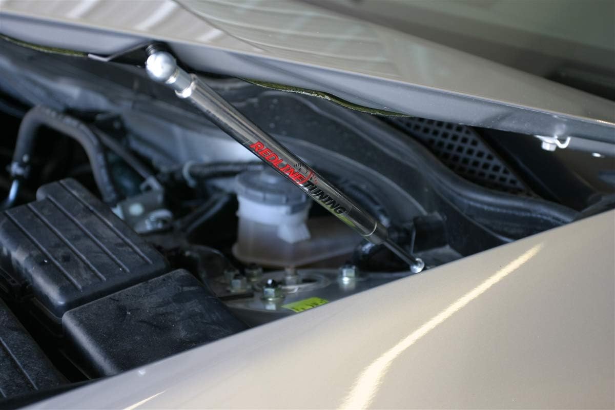 Redline Tuning Hood Quicklift Systems are designed to clean up your engine bay by eliminating the hood prop-rod. The clunky prop-rod is always in the way, but after removing the prop rod and installing a Hood Quicklift System the engine bay is free from obstructions. All Quicklift Systems utilize progressive-rate gas springs that will lift and hold your hood open. Simply start to lift the hood with one hand and it will rise unassisted in a smooth and controlled motion.