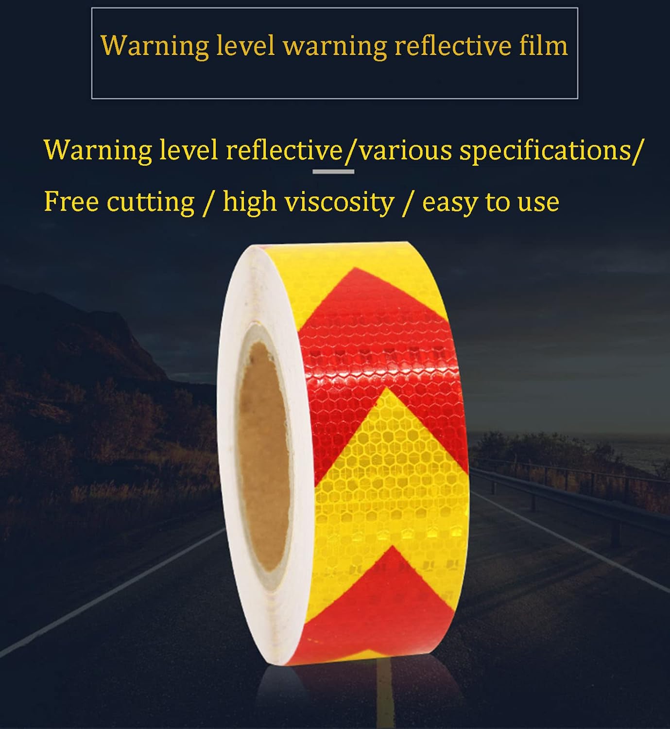 PVC lattice material multi-color reflective sticker reflective tape 5*25 meters multi-color guide labelProduct size:Width: 5cm/2in Length: 25m/82ftcolour:red-black arrows, yellow-red arrows, black-yellow arrows, black-green arrows, white-red arrows, black-orange arrowsProduct composition:1 volumeInstallation steps:Step 1: Use scissors to cut out the length you need.Step 2: Use a rag to clean the surface so that there are no dust or water on the surface.Step 3: Paste the tape on the surface with your hand or tool.Product features:Attention-getting brightness improves temporary traffic control safetyWeather resistance, keep good reflection in the bad weather, like the raining day, foggy or dark conditionDustproof, moisture proof, easy to erase.Tear Growth Resistance, Scratch resistance, water/oil ResistanceProduct use:widely used in transportation, construction engineering and agricultural production tools, such as trucks, trailers, ractor,Container,crane,stage, barricade,garage,corridor,letter boxes, fences, Road signs, warning posts, anti-collision posts, guardrails, bicycles, motorcycles, trolleys, trailers, etc