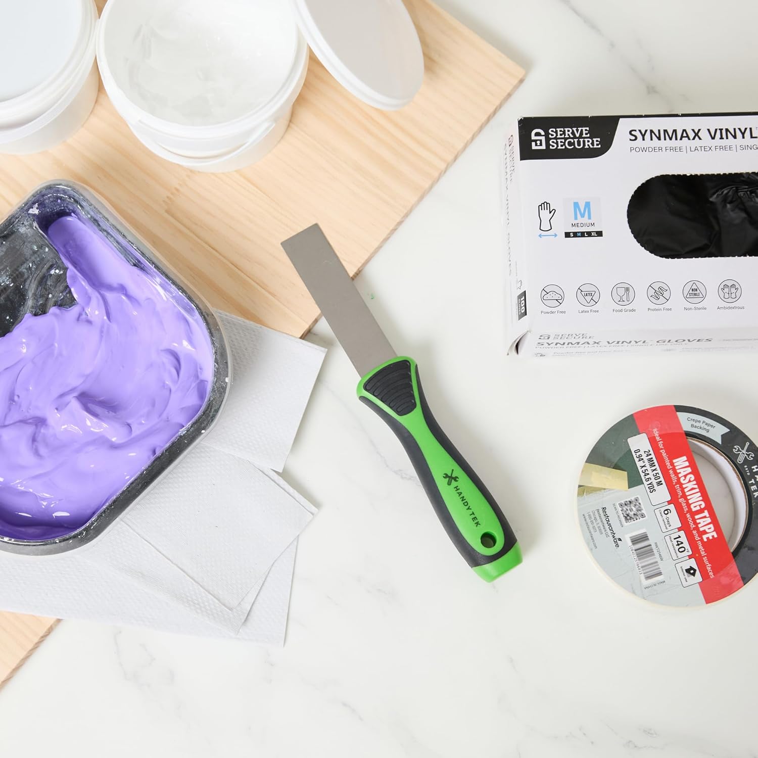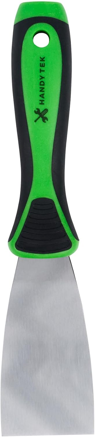 Our Handy Tek Carbon Steel Putty Knife is designed to tackle the toughest repair jobs with ease. Made from premium carbon steel, this putty knife withstands heavy pressure without bending or breaking, ensuring long-lasting durability. This flexible putty knife allows for smooth spreading of putty and fillers, delivering an even finish every time. Featuring a soft grip handle, this spackling knife is ergonomically designed with a textured, soft grip that provides comfort and control, reducing hand fatigue during extended use. This scraper tool boasts a sharpened, tapered blade edge for precision work, making it perfect for seamless applications of putty, spackle, and joint compound. Measuring 8.86 inches in length by 1.58 inches in width by 1.18 inches in height, this wall repair knife is ideal for detailed and intricate repairs. Sold in a 144 count box.