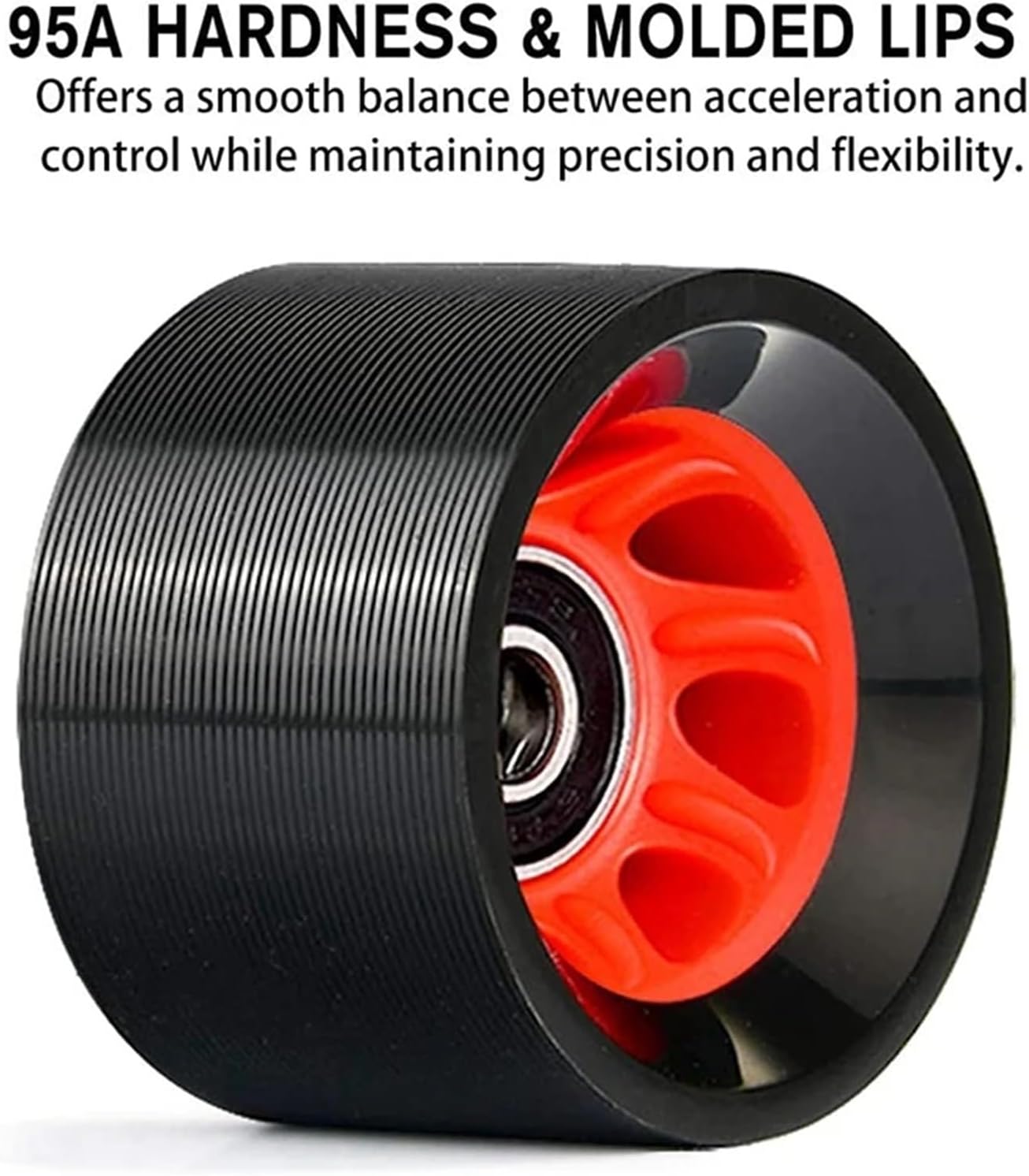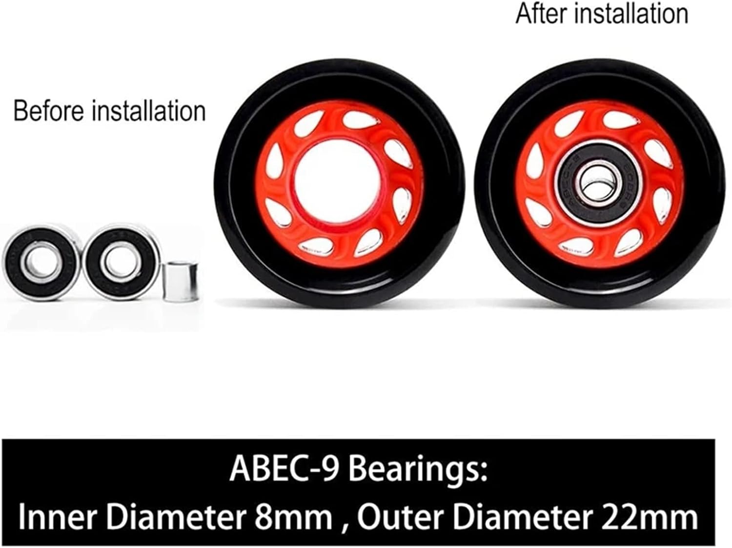 Enhanced Grip and Traction: The Roller Skate Wheels are designed with enhanced grip and traction, providing excellent control and maneuverability on various surfaces. Their superior traction ensures stability and confidence while skating, reducing the risk of slips and falls and enhancing your overall skating experience.[High-quality material]-Made of durable material, designed to provide good grip and speed under various hardness conditions, and has excellent durability.[Diameter]-equipped with ABEC 9 bearings and gaskets, bearing inner diameter is 8 mm, bearing outer diameter is 22 mm[95A hardness, indoor performance] - 95A hardness, providing grip, speed and durability. These long-lasting art wheels are of competitive quality, and the formula rolls smoothly while providing excellent grip on the floor. Suitable for skating style: jam, derby, speed, racing.[Highlights] - The inner and outer edges of the wheel hub are oversized, thereby reducing the polyurethane content on the edge of the wheel. This makes the stop operation simple and provides excellent response. There is space in the middle of the wheel hub to accommodate more polyurethane, provide grip, increase control and improve the riding experience.colour:Black+redMaterial:PUsize:58 x 39cmPackage Contents:8 x Roller skate wheel(Bearings include)1 x Mounting wrenchOnly the above package content, other products are not included.Note: Light shooting and different displays may cause the color of the item in the picture a little different from the real thing. The measurement allowed error is +/- 1-3cm.