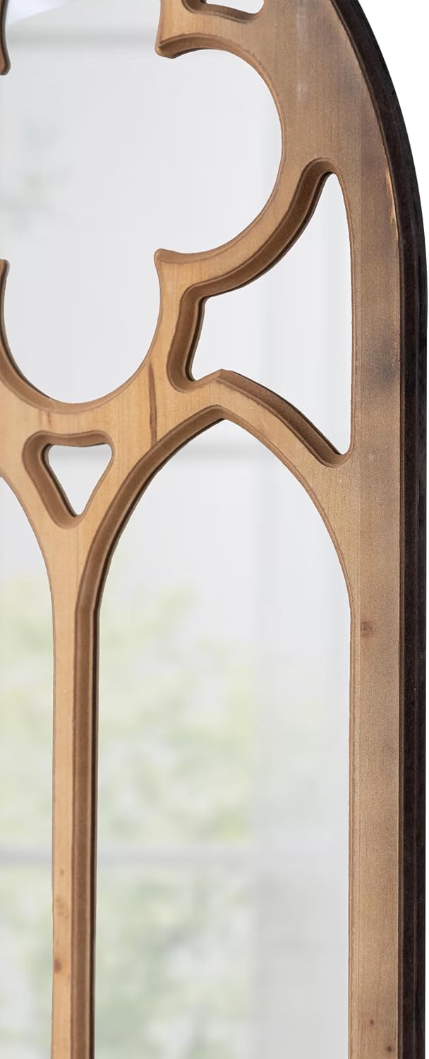 Rustic Gothic Cathedral Window Mirror 18 X 36 Inch, Hanging Burning Finshed Farmhouse Arched Window Pane Mirrors, Wood Frame Window Mirrors for Wall Decor for Fireplace Bathroom
