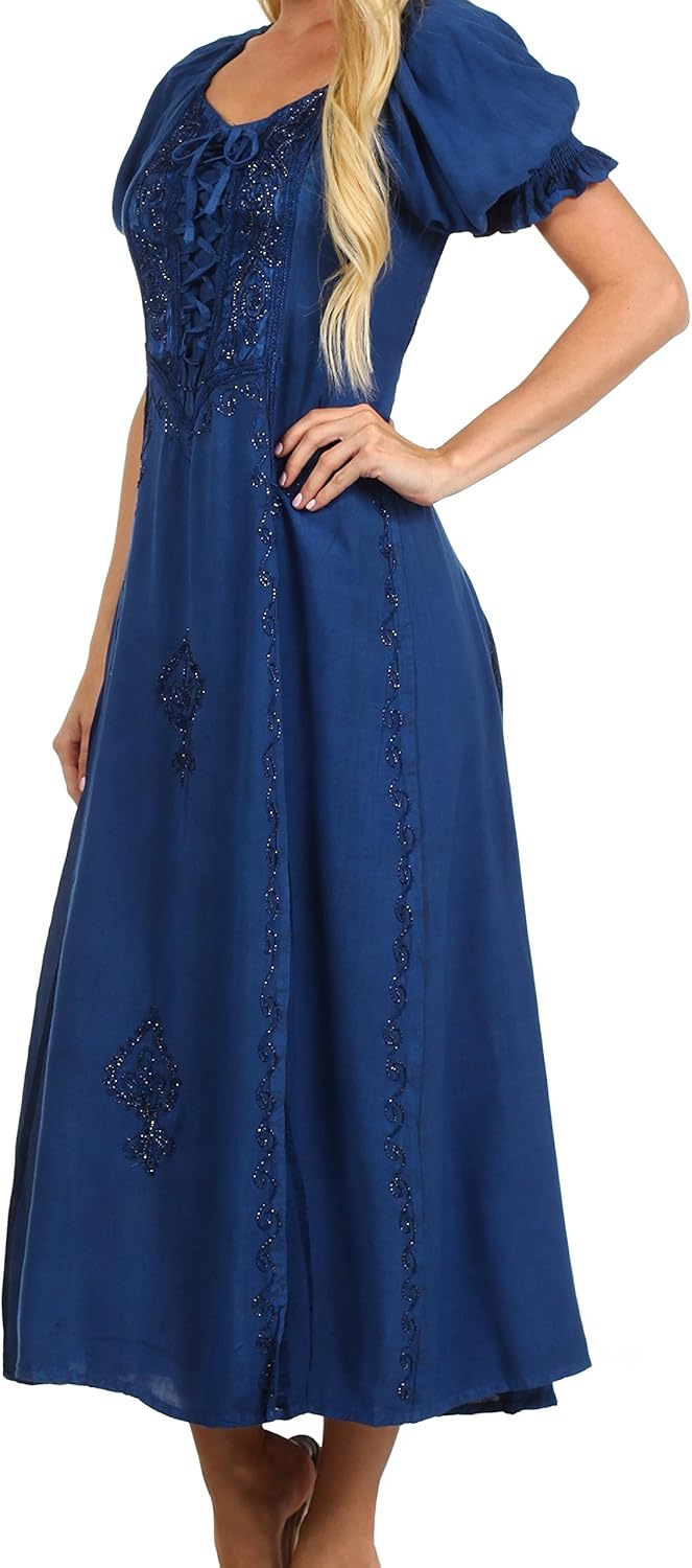 Sakkas' stonewashed rayon dresses feature delicate embroidery, beautiful rich colors and easy comfortable style. Enjoy wearing a flattering feminine dress without sacrificing comfort!