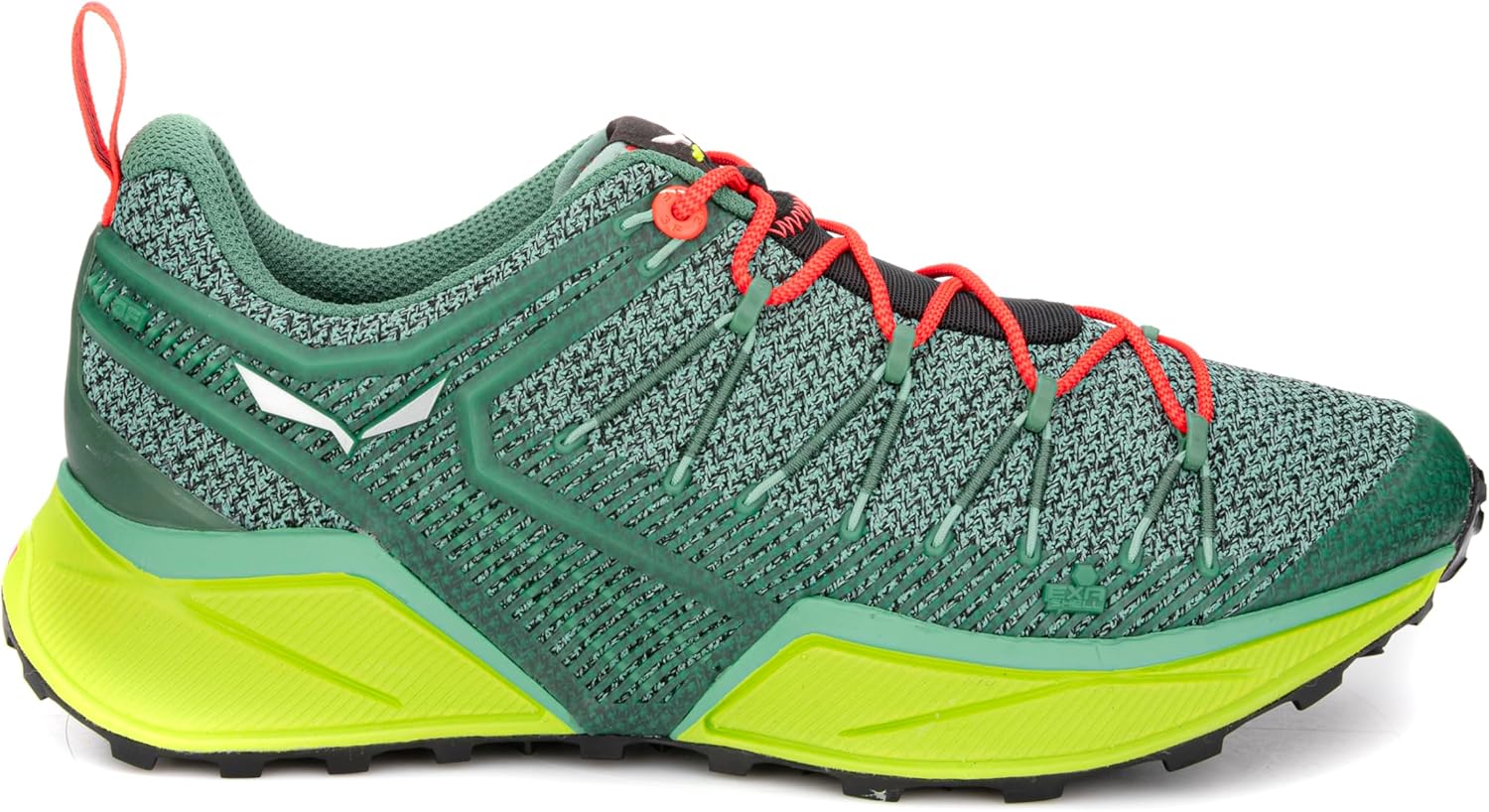 We have developed the Dropline for mountain lovers who want to move longer, faster and more comfortably on alpine terrain. It is characterised by a lightweight air mesh construction and a powerful EVA midsole that provides lightweight cushioning and soft comfort when putting on and minimises the impact force that acts on joints and muscles. The newly developed sole with an S-Path design allows for a more natural, smoother rolling during fast, dynamic movements as well as excellent stability. The rounded Pomoca outsole provides optimal traction on all types of terrain. The supportive 3F system, the protective EXA shell coating and the heel cap guarantee your foot a secure hold and torsional resistance. Inside, the breathable OrthoLite footbed provides optimal cushioning, wicks away moisture and offers your feet a cooler, drier feel. The Dropline is an agile speed hiking shoe with excellent shock absorption and a protective, snug fit so you can move longer, faster and more comfortable on alpine terrain.