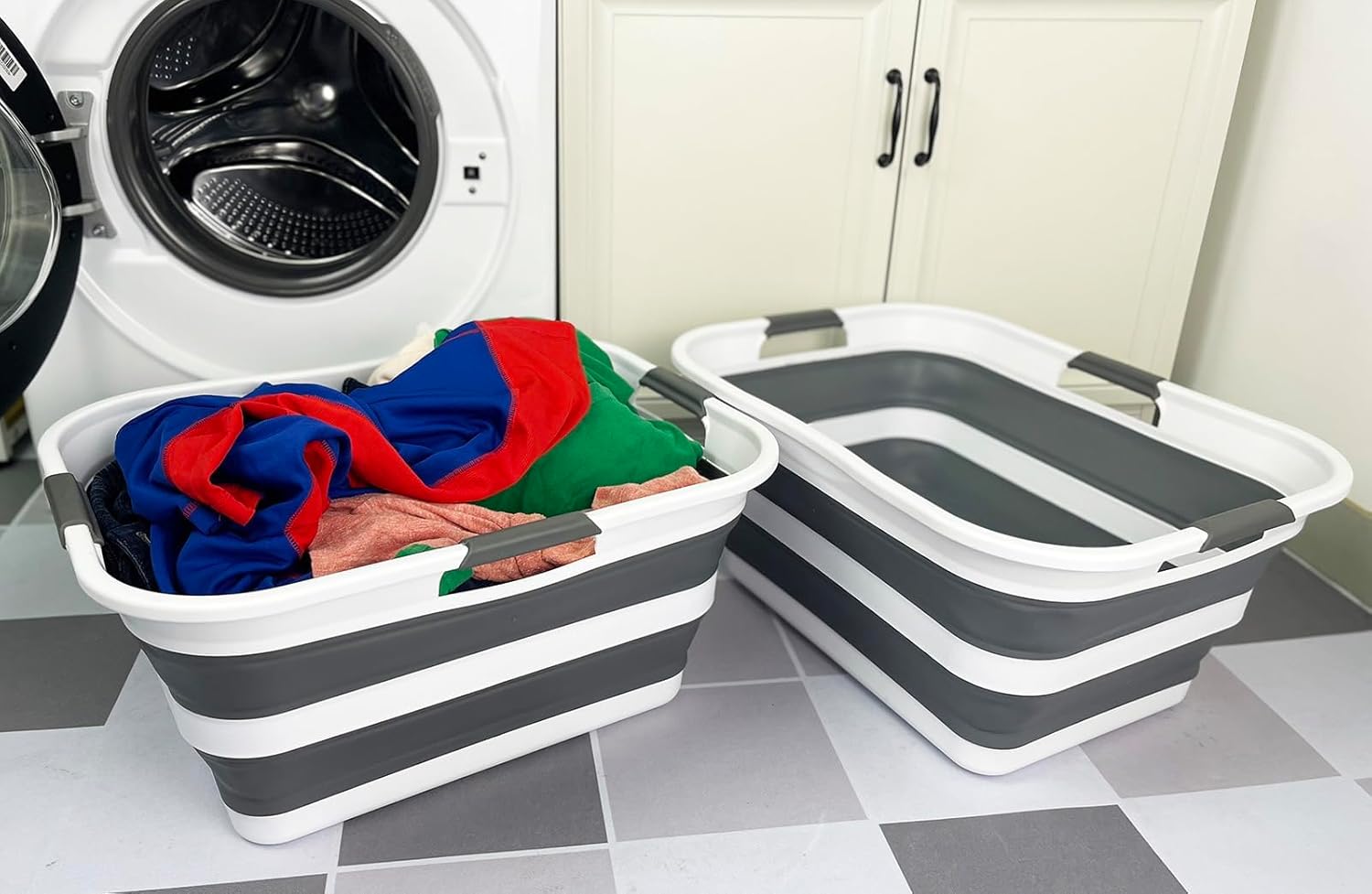 **Set of 2 Collapsible TPE/PP Laundry Basket **Brand: SAMMART **Material: TPE & PP **Expanded size: 20 x 15.2 x 10 inches **Collapsed size: 20 x 15.2 x 2.7 inches