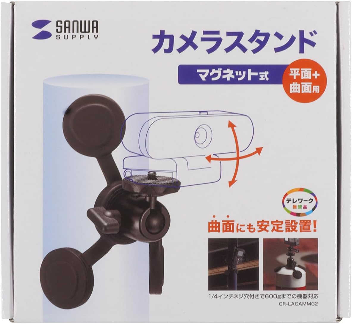 Camera mount with 4 powerful magnets on the bottom. The 3 base can be easily installed on flat or curved surfaces. The ball joint can be rotated 360 degrees to freely adjust the angle. ● Easy to install on steel racks or walls. ● Can also be attached to cameras and other devices with a 1/4" screw hole. Note: Uses very strong magnets. Also, each of the 3 base attracts with magnets. Be careful not to get pinched with your fingers. Placing the camera near the magnet may cause the camera to malfunction and the recorded image data may be destroyed. Please make sure the surface of this product is mounted close to the camera. When installing, please ensure that the clamp does not slip or slide off before using. ■Installation Method: Magnet. ■ Size: Main unit (W x D x H): 4.8 x 5.5 x 2.6 inches (123 x 1GoPro Adapter/W58.2D31H26mm ■ Weight: Main body: Approx. 8.8 oz (250 g). GoPro Adapter: Approx. 0.6 oz (18 g). ■Material: ABS resin, silicone rubber, aluminum, neodymium magnet. ■ Load Capacity: 21.3 oz (600 g). ■ Set Includes: Magnetic base, head head, GoPro adapter, hex wrench, instruction manual (English language not guaranteed).