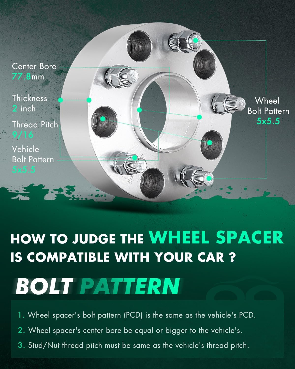 | Special Features | 5 lug hub centric wheel spacers 2 inch, 5x5.5 hub centric wheel spaceres 2", hub centric wheel spaceres 2", hub centric wheel spaceres 2" 5x5.5 to 5x5.5, hub centric wheel spacers 5 lug |