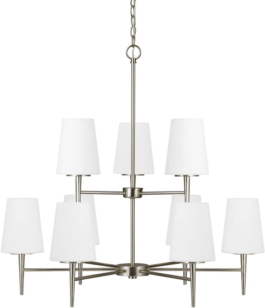 The Sea Gull Lighting Driscoll four light vanity fixture in satin bronze offers shadow-free lighting in your powder room, spa, or master bath room. The 1960's-inspired Driscoll collection by Sea Gull Lighting features the clean lines of tapered stems and glass shades. Simplicity combined with sophistication creates this strikingly modern look. Offered in a Brushed Nickel finish in addition to the Chrome finish also offered for wall/bath fixtures - all of which feature Etched White glass shades. The assortment includes nine-light, five-light and three-light chandeliers, a mini pendant, a Flush mount ceiling fixture, as well as one-light, two-light, three-light and four-light wall/bath fixtures. Both incandescent lamping and ENERGY STAR-qualified fluorescent lamping are available. Most of these fixtures easily convert to LED by purchasing LED replacement lamps sold separately.
