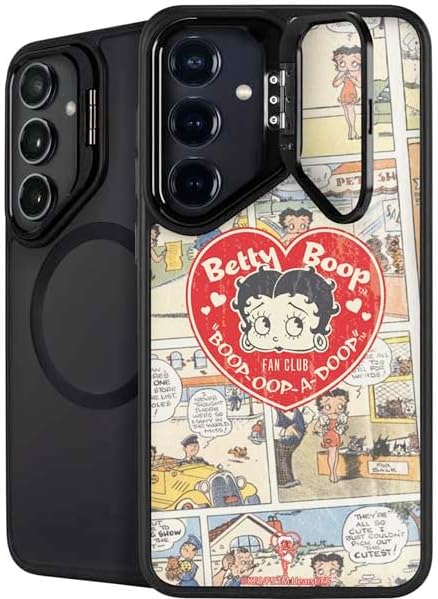 The Betty Boop With Puppy Kickstand Case compatible with Galaxy S25 Plus is the ultimate in versatile protection and convenience. Featuring an innovative lifted camera ring with a built-in stand, it allows hands-free video watching with adjustable angles from 0 to 150 degrees. This premium Betty Boop Case supports wireless charging and is fully compatible with MagSafe, offering a sleek design without compromising on durability or functionality.