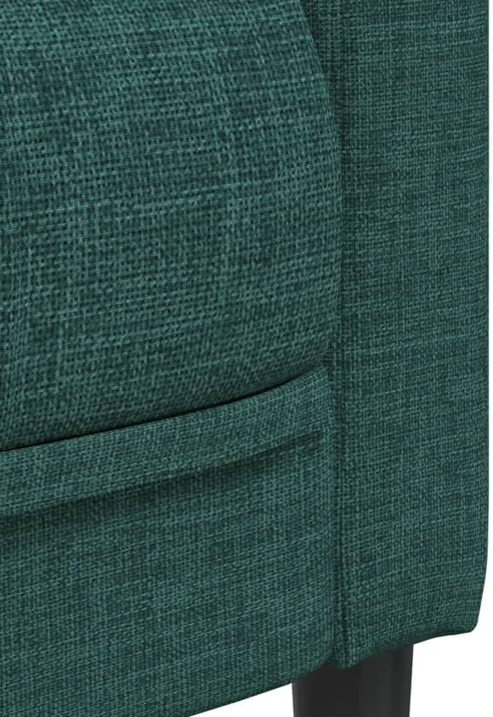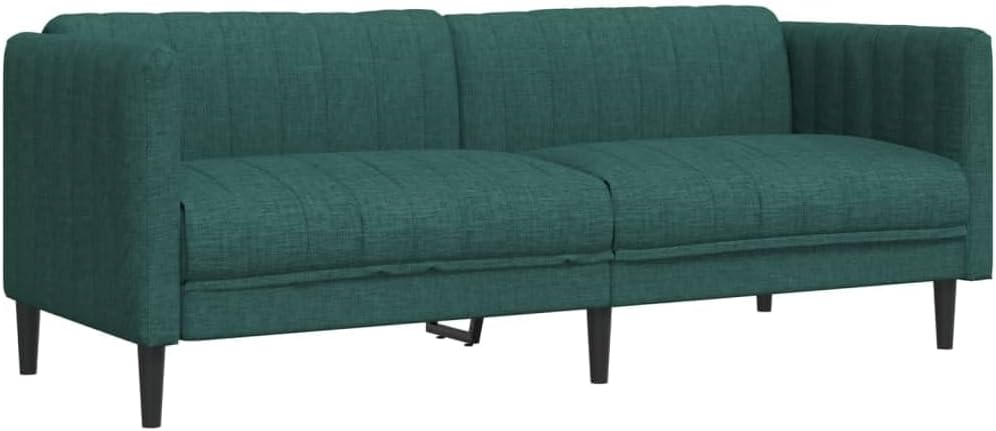 This dark green fabric 3-seater sofa mixes style and comfort perfectly. With its soft upholstery and solid design, it lifts the vibe in any living room or office space, making it an inviting place to unwind and hang out.Robust Construction: Made with plywood and solid wood, built to hold up well while staying good-looking. This sofa can handle daily use and keep its charm.Padded Armrests: Comes with plush, cushy armrests that amp up the comfort for long sits, great for those lazy afternoons.Easy to Maintain: Made for ease with removable zipped seat cushions, so you can clean it up without a fuss.Large Capacity: Seats up to three people with ease, perfect for family hangouts, movie nights, or a nice reading spot.Stylish Look: The dark green fabric over brown wooden legs gives a pop of color to your decor, making your living room more inviting.Colour: Green Shape: RectangularMaterial: Farbic PolyesterFinish: Matte Indoor/Outdoor: Indoor OnlyCover Included: NoRoom: Living RoomMaximum Number of People: 3Maximum Weight: 330 kgDimensions: 76.5 x 193 x 74.5 cm (W x L x H)Leg Height: 26 cmWeight: 27 kgSeat Depth: 58 cmSeating Capacity: 3Swings: NoDelivery Contains: 1 SofaAssembly Required: YesSKU: 372617