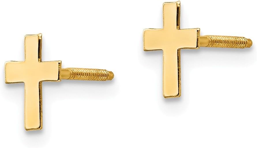 • Your satisfaction is our top priority at Sonia Jewels - Solid 14k Yellow Gold Polished Tiny Cross Crucifix Screwback Studs Earrings (6mm x 4mm)