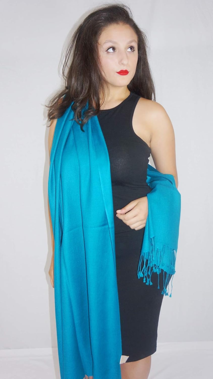 Unfazed by the scientific age, pashmina shawls are hand spun the same way it has been done for centuries. The hairs are gathered from the Himalayan goat called Hircus, which lives at high altitudes, 12 to 14000 feet in the mountains. The Pashmina is gathered by hand, stored and combed by nomadic herders. The threads are hand woven on hand looms over a silk wrap, which gives the fabric resilience. Once the fabric is loomed, each piece is hand dyed in open vats. Afterwards it is given to the different craftsmen for hand-embroidery, beading and /or printing. They are very soft and luxurious in feel. These shawls are woven from the best quality of Pashmina and Silk. These shawls can be worn as a wrap or a scarf. The size is 80 inches long and 36 inches wide and each shawl is finished with 2 or 2.5 inches long tassels. The fabric comprises of approximately 70% Pashmina Wool and 30% Silk . The combination of pashmina and silk makes the fabric versatile and resonating with color. The shawls are hand loomed in Nepal and India and are offered in a wide selection of vibrant colors. We recommend dry cleaning.