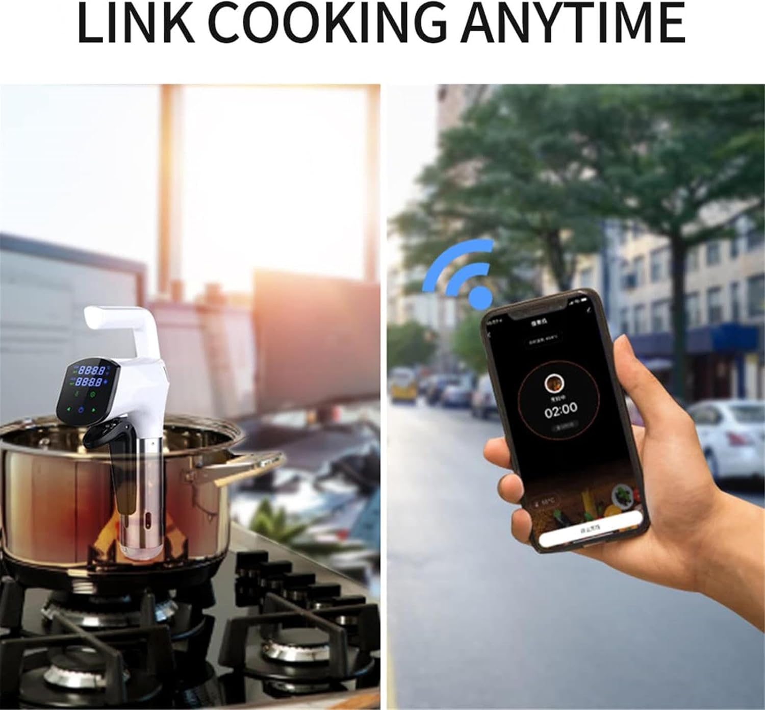 ▶Sous vide cooker is one of the most popular kitchen gadgets on the market. It circulates the water slowly, keeping your food warm, soft and juicy. ▶Sous Vide Cooker with Wifi App Control! The digital touchscreen control panel shows temperature settings on a clear, easy-to-read display. Simply pair your device with a smart app to control your cook over the entire Wi-Fi range, then free you up and spend more time with family and friends. The device only supports 2.4GHz Wi-Fi router.▶Adjustable time and temperature controls allow you to have complete control over the cooking process. ▶Great for steak, grilled chicken, hard-boiled eggs, salmon, and more. Its amazing performance helps you to easily create professional dishes at home.Parameter:Rated voltage: 110V/220VRated power: 1800WSize: 34.1cmRange of temperature: 25ºC - 92.5ºCTimer: 99 h, 59 minTemperature range: ± 0.1 ℃WIFI: only suitable for 2.4GHZ WIFI routing environmentProducts Include:1 * Sous Vide CookerNote:If you have any questions, please feel free to contact us, we will be happy to assist you.