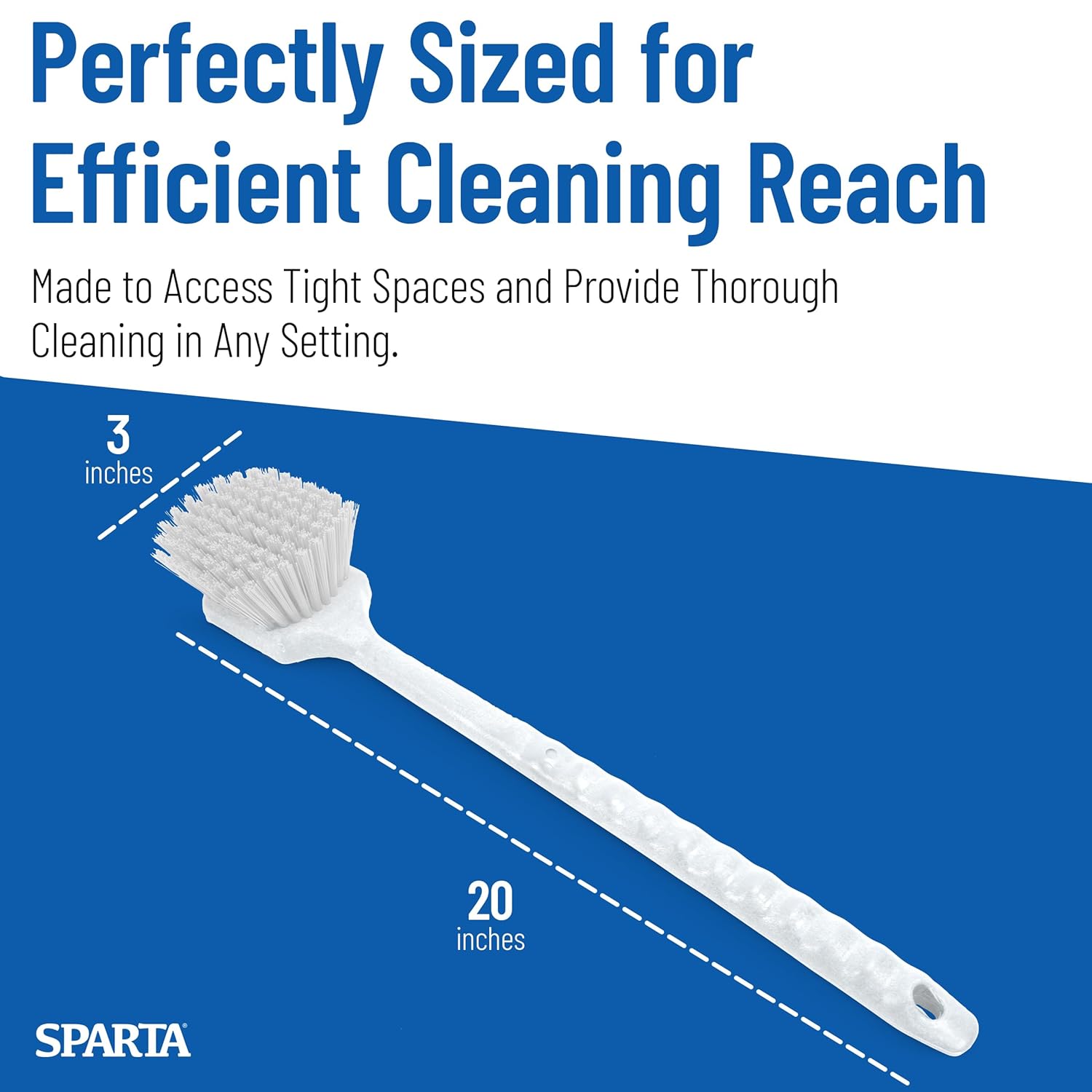 The Sparta 20" Floater Scrub Brush is a durable and reliable cleaning tool designed for HACCP color-coded cleaning programs. Built for industrial, foodservice, and commercial use, it features oil-resistant, non-absorbent polyester bristles that hold their shape, making it effective for scrubbing floors, workstations, and other surfaces without wearing down. With multiple trim angles, this brush provides better surface contact, helping to remove dirt and grime more efficiently. The foam-injected plastic block adds strength and durability, preventing cracks and warping, even with frequent use. Designed for temperature resistance from -40°F to 125°F, it works well in both cold storage areas and high-heat environments. The ergonomic handle makes it comfortable to use for extended cleaning tasks, and its lightweight but sturdy build ensures long-lasting performance. FDA-compliant and BPA-free, this brush meets industry standards for safe and effective cleaning in demanding environments.