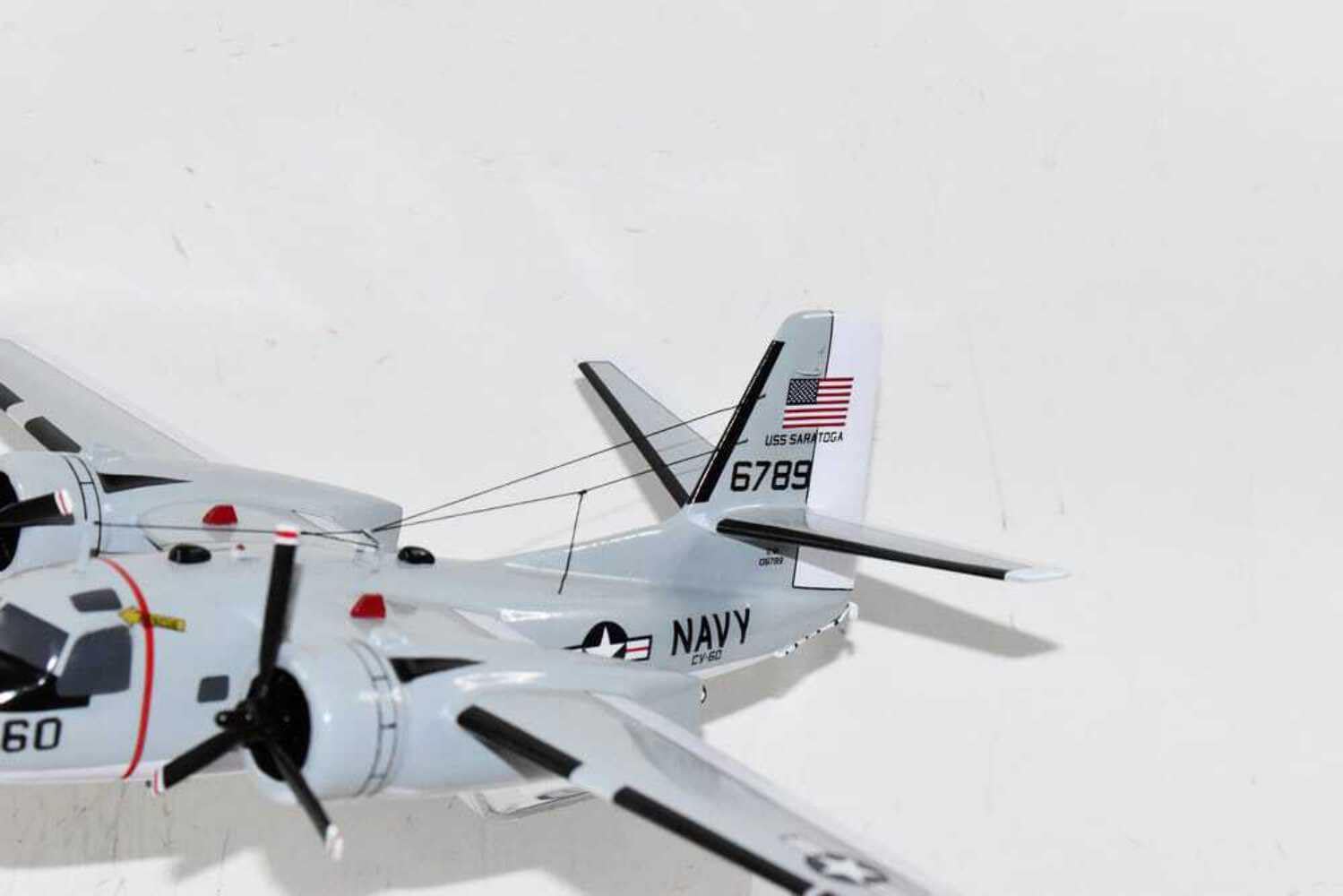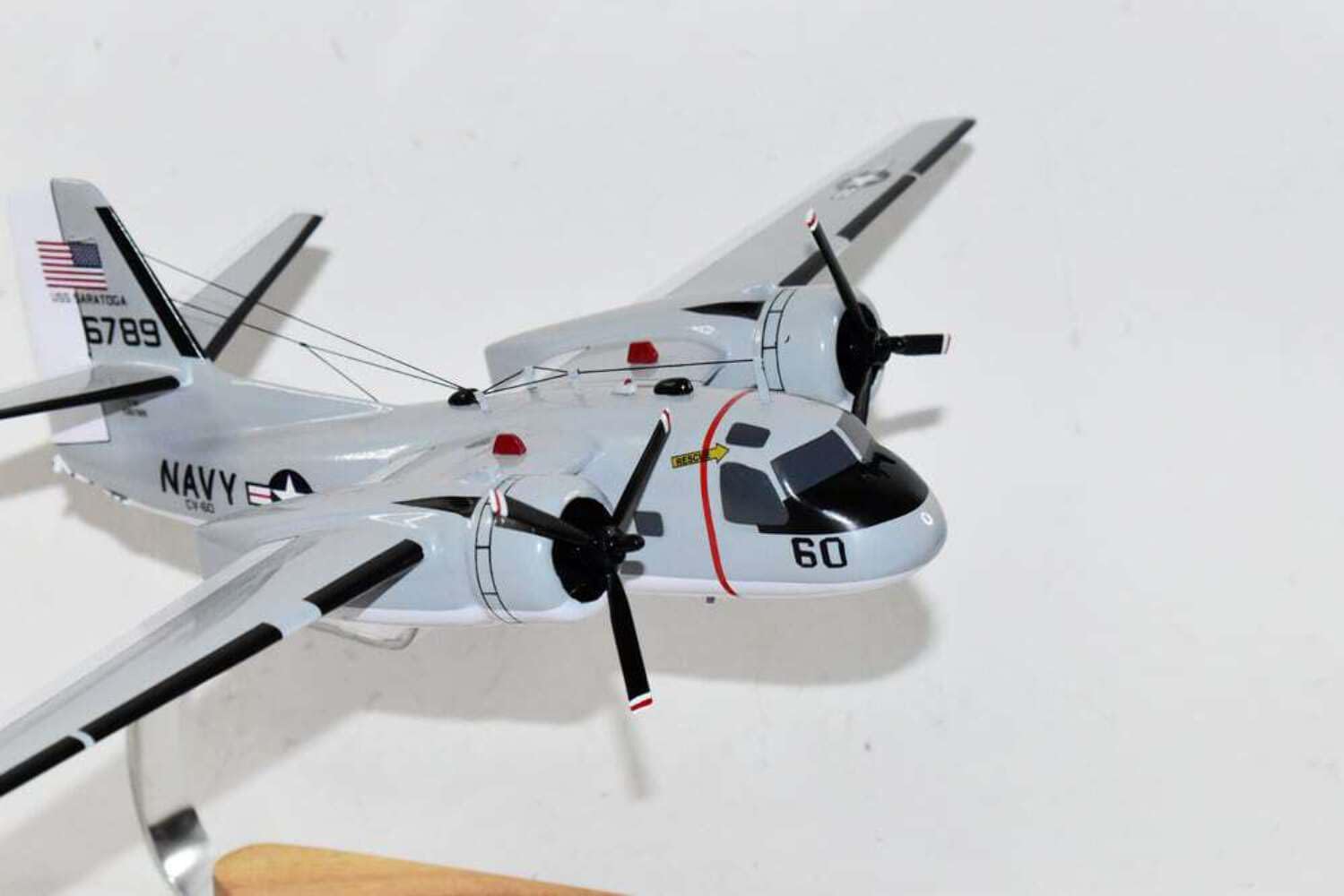 CV-60 USS Saratoga C-1A Trader ModelFly with the CV-60 USS Saratoga in this hand crafted C-1A Trader Model. Each model is carved from wood and hand painted to provide a unique piece that will always be treasured.Wingspan – 18 inchesMade from MahoganyUS Veteran Owned BusinessUSS Saratoga (CV/CVA/CVB-60), was the second of four Forrestal-class supercarriers built for the United States Navy in the 1950s. Saratoga was the sixth U.S. Navy ship, and the second aircraft carrier, to be named for the Battles of Saratoga in the American Revolutionary War.Commissioned in 1956, she spent most of her career in the Mediterranean, but also participated during the Vietnam War, receiving one battle star for her service. One of her last operational duties was to participate in Operation Desert Storm.Saratoga was decommissioned in 1994, and was stored at Naval Station Newport in Newport, Rhode Island. Multiple unsuccessful attempts were made to preserve her as a museum ship. The Navy paid ESCO Marine of Brownsville, Texas, one cent to take the ship for dismantling and recycling. On 15 September 2014, ex-Saratoga arrived in Brownsville, Texas, to be scrapped. Scrapping was completed by early 2019.