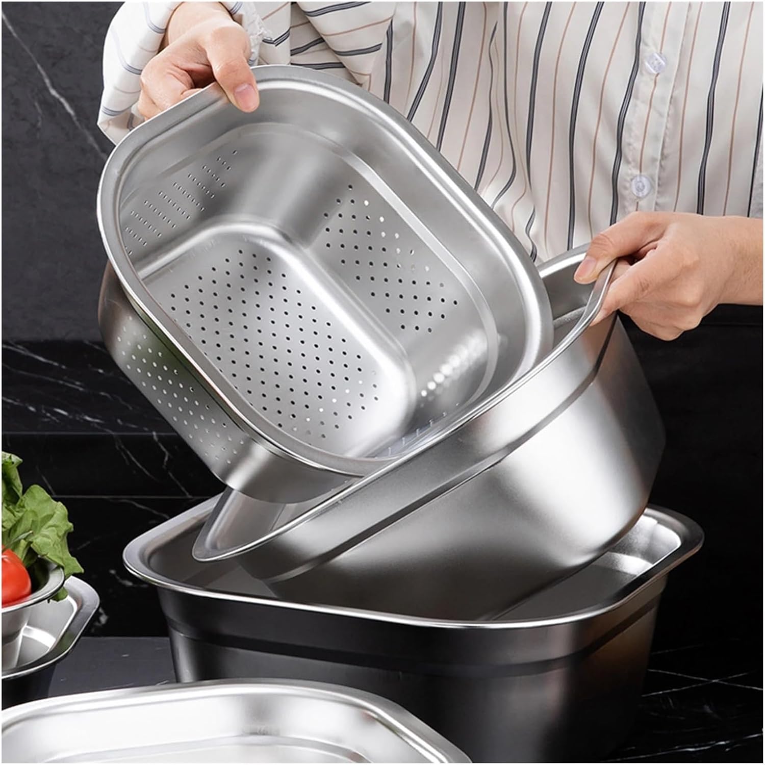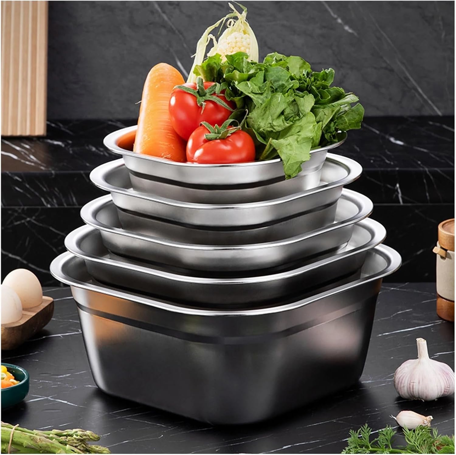 Stainless Steel Square Basin Versatile Mixing Bowl For Kitchen Washing Vegetables Heated Drain Wide Rim(24cm)