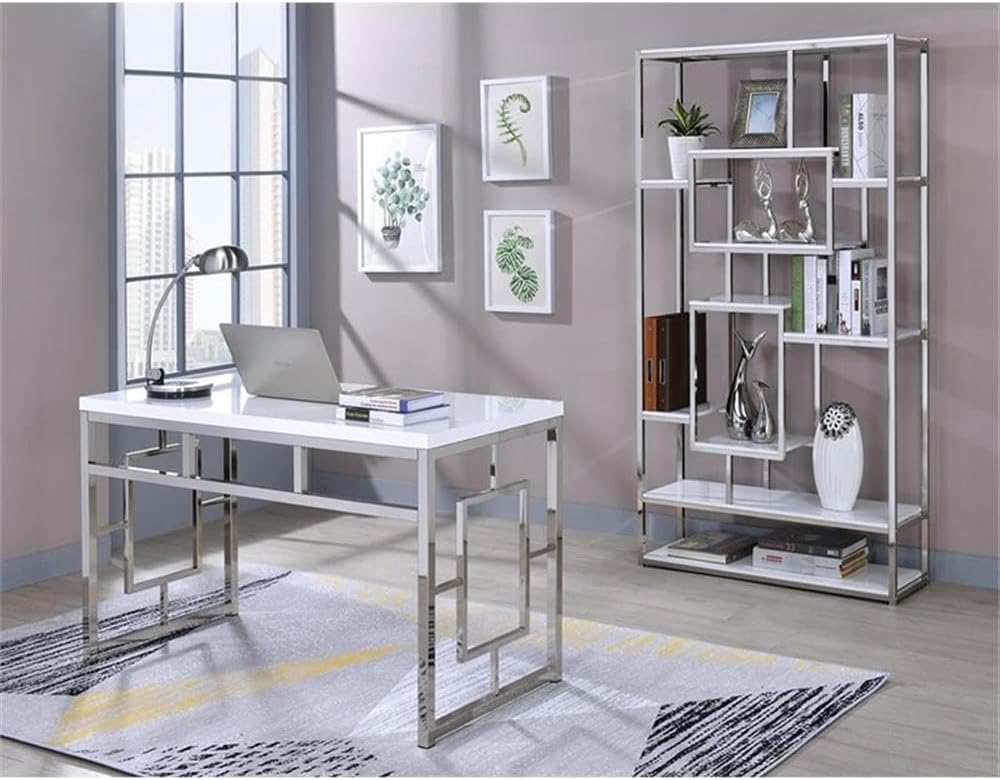 The Alize desk features a stunning design in chrome that encompass modern styling. The geometric side panels flow seamlessly to the silver shield 3D laminate top, that resists heat, scratches and moisture for a piece that truly boats form and function.