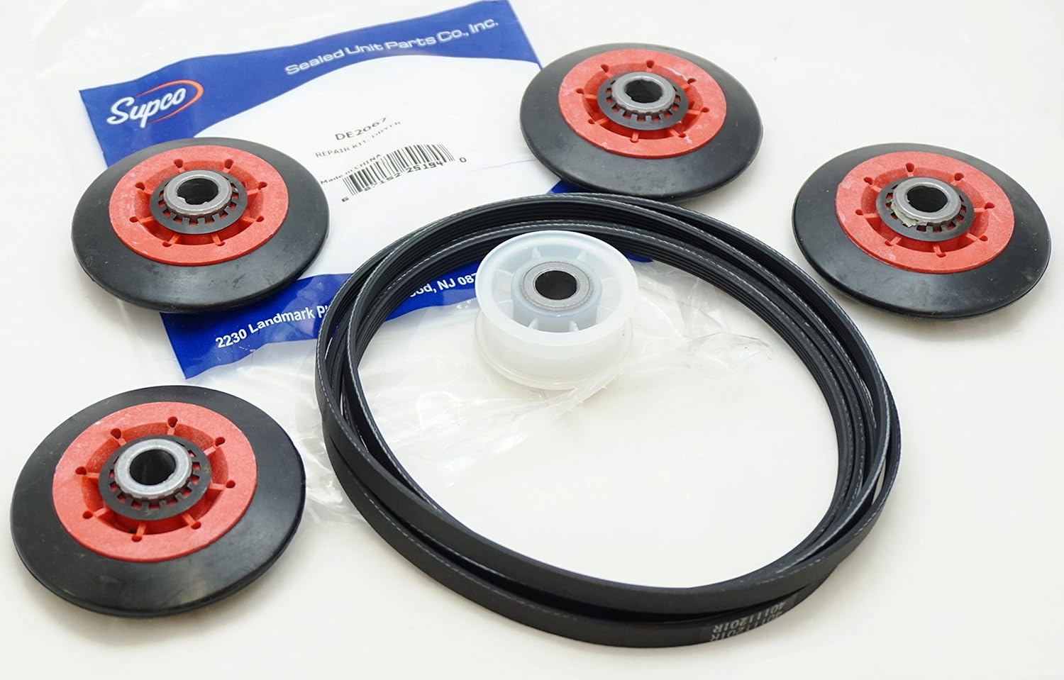 Supco DE2067 Replacement Dryer Maintenance Kit for Whirlpool part number 4392067. Fits 27" Dryers including Over/Under Stack Units. This kit includes: 4 Heavy Duty Drum Rollers W10314173 (349241HD). 1 Idler pulley 279640 1 Drum Belt 661570, 3387610(40111201) Tri Rings for Each Roller Retainer Clip for Each Roller. Replacement for numbers 587637, 80047, AH373088, AP3109602, EA373088, and PS373088. Designed to fit specific Whirlpool manufactured dryer models including Amana, Jenn Air, Kenmore, Magic Chef, and Maytag.