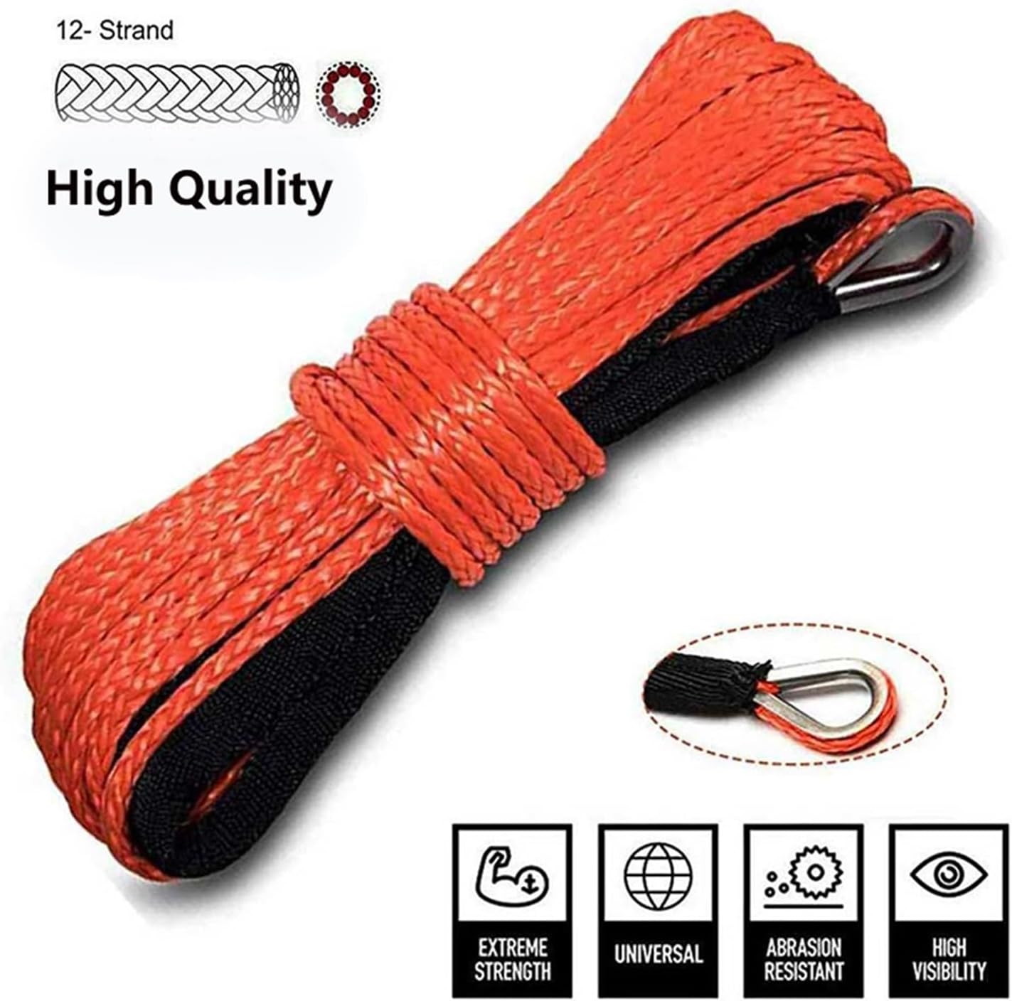 Specification:Material: ultra high molecular weight polyethyleneColor: grey, red, bluePackage:1 pc x Synthetic winch ropeNote:1. Due to the light and screen difference, the item's color may be slightly different from the pictures.2. Please allow 1-2 cm differences due to manual measurement.