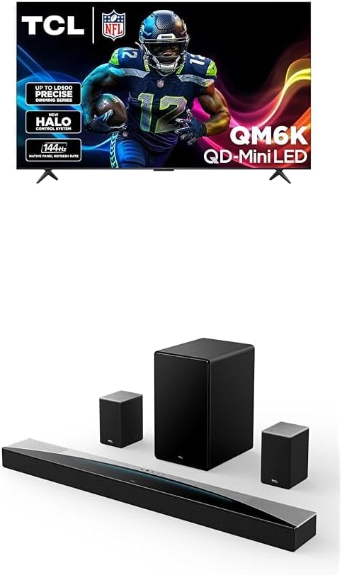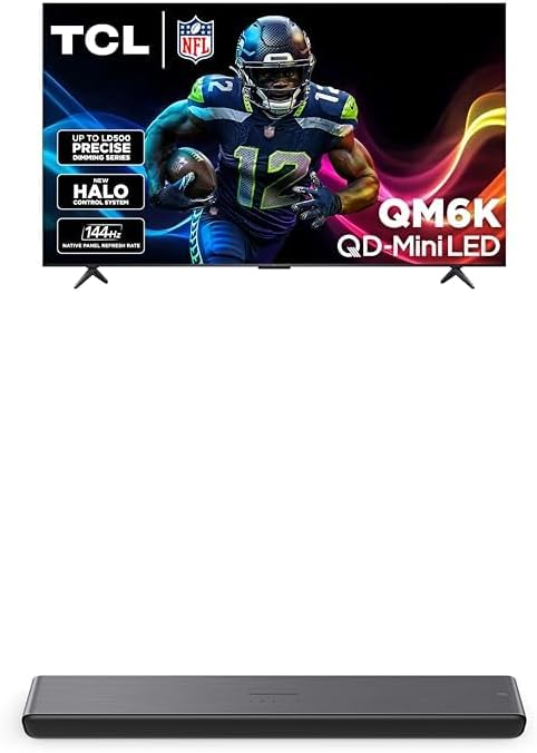 TCL QM6K Series Smart TV, The New Definition of Affordable Premium, is ideal for fast action movies, sports, and next level gaming TCL’s Halo Control System that includes the New Super High Energy LED Microchip, Condensed Micro Lens, Micro OD Reduced Optical Distance, High Contrast HVA Panel, Enhanced QLED, Zero Delay Transient Response, Bi-direction 23-bit Backlight Controller, and Dynamic Light Algorithm for Stunning “Halo-Free” Images. With Up to LD500 Precise Dimming Series and High HDR Brightness, you’ll experience pure black levels and a great picture in virtually any room lighting environment. TCL's AIPQ PRO Processor, an advanced processor optimizing each scene with machine learning provides an unrivaled cinematic experience. 144Hz native panel refresh rate with Motion Rate 480 focuses on best-in-class motion clarity producing smooth video playback. With TCL's Game Accelerator 288 (240 on 50”/55”) and Auto Game Mode gameplay is blistering fast keeping you ahead of the competition. TCL QM6K TVs feature Dolby Atmos, DTS Virtual:X, and an all new ONKYO speaker system with a built-in subwoofer* for high performance spatial sound. TCL QM6K Series Smart TVs are the new definition of Affordable Premium.