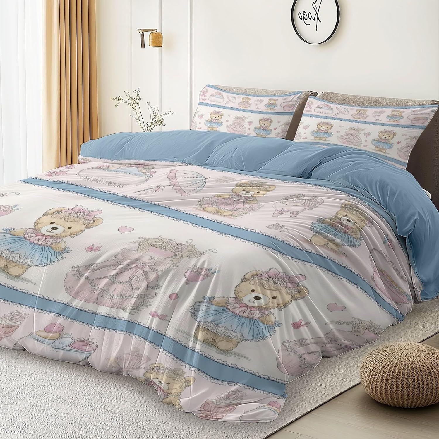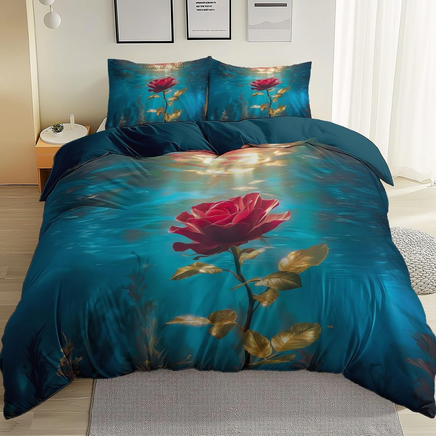 Stylish Reversible Duvet Cover Set – Ultra-Soft, Lightweight, and Breathable – Machine Washable – Queen Size Quality & Comfort: Crafted from premium brushed microfiber, this soft duvet cover is ultra-soft, breathable, and lightweight, offering exceptional comfort for every season. Its wrinkle-resistant and fade-resistant fabric maintains rich color and smooth texture after repeated washes, making it a durable duvet cover set for year-round use. Hassle-Free Zipper Design: The hidden zipper closure allows for easy insertion and removal of your comforter, offering a secure fit every time. Four inner corner ties help keep your duvet insert in place without shifting or bunching—ensuring a tidy and cozy night’s sleep in this lightweight duvet cover. Stylish & Versatile Design: This reversible duvet cover set features a one-sided printed design with a matching solid color on the reverse side, offering two coordinated looks in one. The patterns vary, giving each bedroom a unique touch while remaining harmonious with any décor. Product Features: Duvet Cover Size: 90" x 90" Pillow Sham Size: 20" x 30" Material: Brushed microfiber, ultra-soft and breathable Design: Reversible Hidden zipper closure and 4 corner ties: Easy to use and keeps your duvet secure How to Use: Place your comforter inside the duvet cover, fastening the 4 corner ties to prevent shifting. Close the zipper to seal. Care Instructions: Machine washable duvet cover—wash cold, tumble dry low. Fade- and wrinkle-resistant. Avoid bleach and dry cleaning for long-lasting quality. Usage: Ideal for bedrooms, guest rooms, dorm rooms, or as a thoughtful gift. Suitable for all ages—boys, girls, teens, men, women, and children. After-Sales Service: If you encounter any issues, please feel free to reach out to us anytime—we're always here to help.