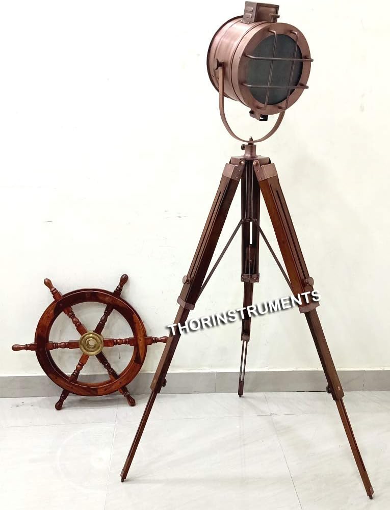 Vintage Nautical Industrial Copper Searchlight Tripod Studio Floor Lamp