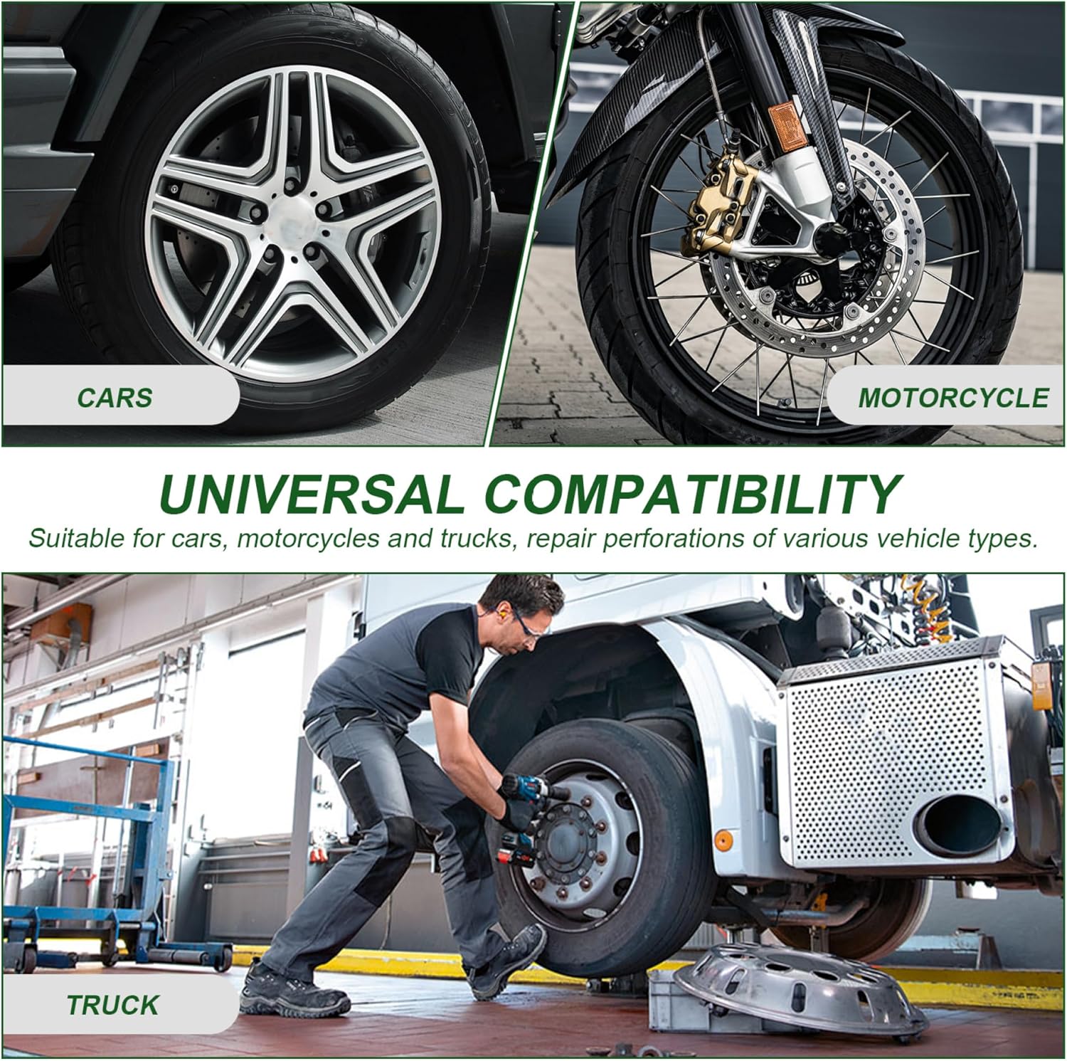 • Universal Compatibility: Suitable for cars, motorcycles, and trucks, this tire repair kit provides a versatile solution for repairing punctures on a variety of vehicle types, offering convenience and reliability.