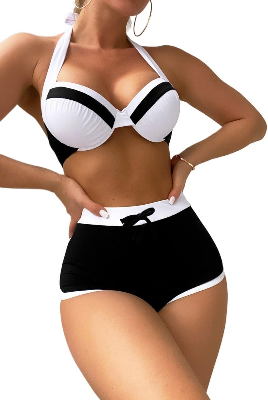 Model is Wearing:S, Height:160cm/63inch ,Bust:90cm/35.4inch ,Waist:65cm/25.6inch ,Hip:95cm/37.4inch Product Measurements:Color:BlackPattern Type:ColorblockNeckline:HalterPattern Type:Colorblock