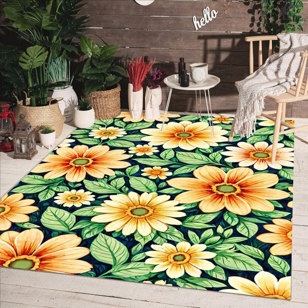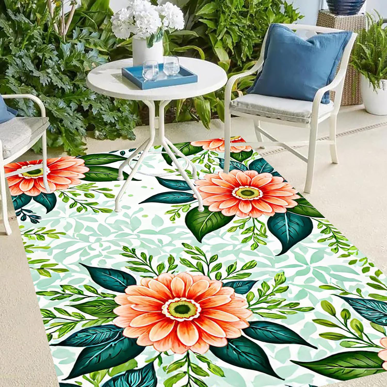 Vibrant Colorful Spring Summer Fall Winter Floral Pattern Waterproof No Slip Outdoor Area Rug for Patio Deck Porch Balcony Backyard,Modern Art Decor Machine Washable Home Office Indoor Outdoor Floor Carpet Hallway Entryway Kitchen Laundry Bathroom Livingroom Bedroom Garden Rug.