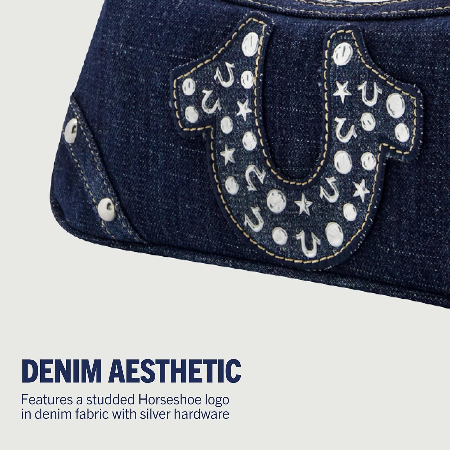 Keep your personal items conveniently accessible while sporting eye-catching style with our True Religion Women's Shoulder Bag. This cute and trendy woman handbag is composed with lightweight and durable denim material with sleek silver hardware, and the over the shoulder hand bag features a shoulder strap with a drop of 10 inches so that you can easily tote around your personal items while on the go. The side bag features a spacious main compartment and an interior back wall zip pocket with a large amount of space for storing keys, wallets, cosmetic supplies, and other personal essentials and small size accessories. Our little shoulder bag is an offically licensed True Religion product, ensuring that you are receiving quality merchandise. Set yourself apart from the crowd and add a touch of elegance and sophistication to your fashion accessories with our True Religion Lady Shoulder Bag.