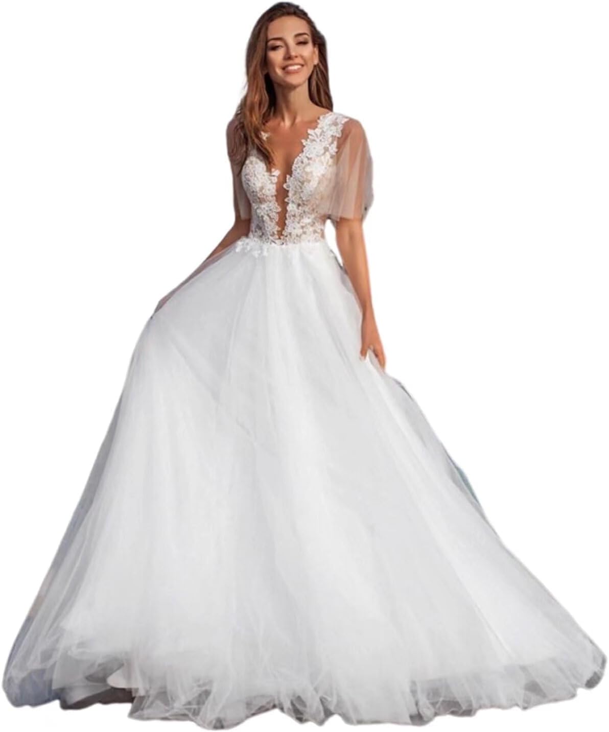 Welcome! We dedicated to provide you all kinds of prom gowns, homecoming dresses, bridesmaid dresses, wedding gowns, cocktail gowns, evening party gowns and etc. There are many colors and style for you to choose. Our dresses will make you look elegant and fashionable in a variety of formal and informal occasions. Hope you enjoy your shopping~ Thinyfull Tulle Lace Wedding Dresses for Bride 2025 A Line Bridal Gown with Train for Bohemian Wedding Suitable for homecoming,senior prom,wedding,graduation,birthday,evening party,holiday, dance, anniversary, engagement or any other occasions, this dress will be your lovely partner~ Features of dresses: Neckline: V Neck Fabric: Lace Sleeve: Sleeveless Length: Long(Floor Length) Back Style: Zipper Customized Size: Please select "One Size" in the size section at the time of purchase. 1.Full Bust _____ inch or ___ cm 2.Waist _____ inch or ___ cm 3.Hips _____ inch or ___ cm 4.Shoulder to Shoulder ____ inch or ___ cm 5.Hollow to floor(Shoulder to Feet without shoes) ___ inch or ___ cm 6.The height of your high heel shoes: _____inch or ___ cm 7.Arm Circumference: ____inch or cm(if the dress with sleeves) Please allow 1-3 cm differs due to manual measurement Color may have color deviation due to the different screen Display. Please check your measurements to make sure the dresses fits before placing the order Hand wash and steam pressing to remove the wrinkles due to long-distance shipping If you have any other question,please contact us freely, and we are always at your service!