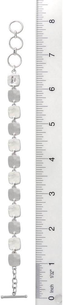 Contemporary lady's link bracelet for everyday wear or that super special occasion. Solid sterling silver, genuine gemstones, and fine craftsmanship. Trendy but with a touch of Southwest flair that is always exciting!Approx 1/3" wide. Fits most average wrists 6" to 8" (adjustable toggle clasp). See ruler image for size/dimensions.Note: Due to the nature of Turquoise, variations in colors/shades and minor imperfections are normal. Our turquoise and coral have been stabilized, treated, and color-enhanced for beauty and durability.Imported