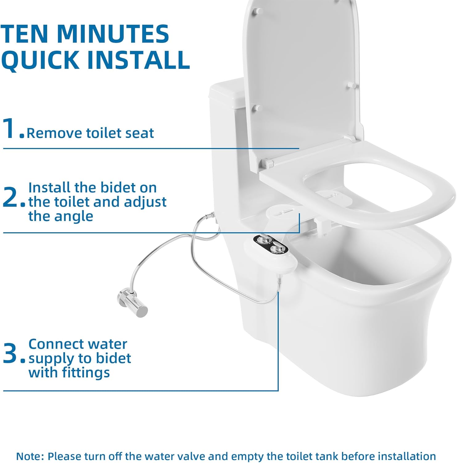 | Included Components | ‎Bidet and Bidet Portable, Braided Metal Hose, Brass T-adapter, Fixed Base, Fixed Ring |