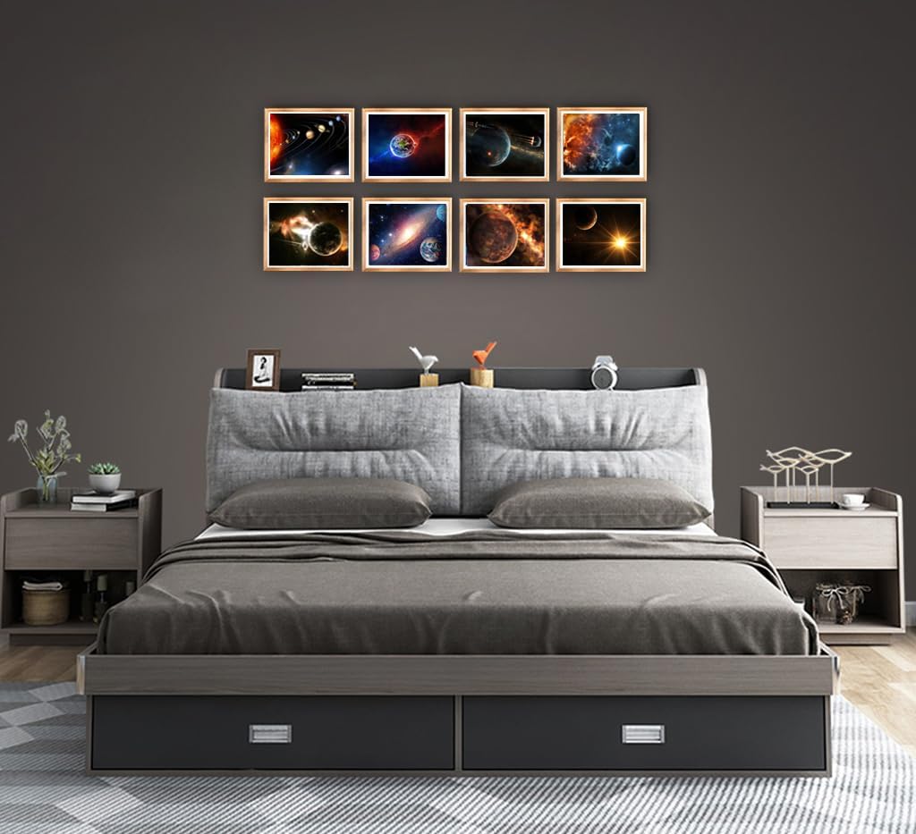 Introduction: Perfect Gift Idea. This set Canvas Artwork will be the perfect for boys’ or girls’ birthday parties, astronomy themed party, holiday gifts, playroom decorations, home school décor, and many more! HD prints on premium canvas, each panel of canvas prints already stretched on wooden frames, high-quality environmentally friendly and odorless .Size: 12X12inch (30x30cm) 6pcs Framed, As a great gift for your friends or family!