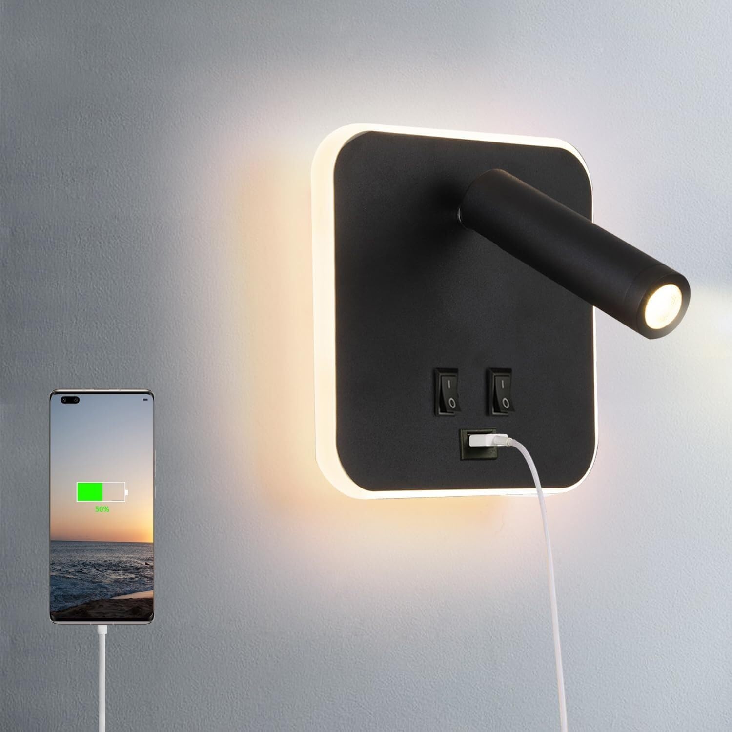 USB Rechargeable LED Wash Light flicker-free bedside lamp Dual-Function 3W Reading Light & 9W Backlight, 350° Adjustable Arm, 110V-220V for Bedroom/Study (3000K Warm White)Dual-Function Lighting 3W focused reading light + 9W ambient wash lightEye Protection 3000K warm white with zero flicker (CREE COB technology)Space-Saving Design Compact 5.7" cube fits tight spacesEnergy Efficient 12W total consumes 85% less power than halogensPremium Heat Dissipation Aluminum housing ensures long lifespanTechnical SpecificationsMaterial: Aluminum alloyDimensions: 5.7"W x 1.18"D x 5.7"H (145x30x145mm)Power: 12W (3W reading + 9W wash)Lumen: 800LMColor Temp: 3000K warm whiteCRI: >90Ideal For:Bedside reading,Hallway accent,Staircase safety,Gallery lightingCOB wall wash light,flicker-free reading lamp,dual mode LED wall light,3000K eye care lighting,ultra-slim bedside lighbedroom reading wall lamp,staircase safety lighting,gallery picture wash light,hallway accent lighting,minimalist bedside sconcemodern Nordic wall light,smart home compatible lamp,adjustable brightness fixture,museum grade lighting,energy saving wall sconce